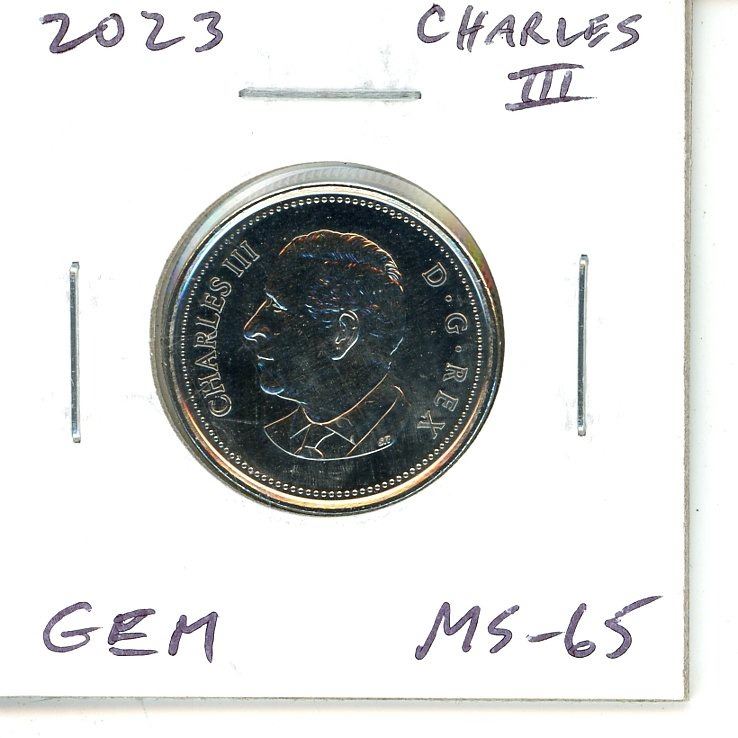 2023 King Charles III Canadian 25 Cents. First issue of the new king. Gem MS-65