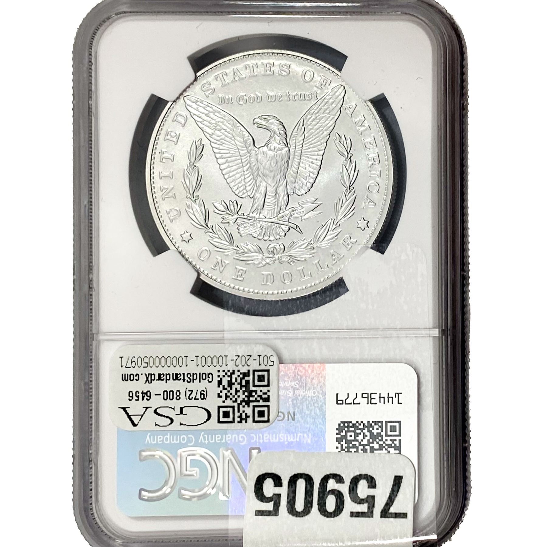 e. Coins sold referencing a third-party grading service are sold “AS IS” without any express or implied warranty, except for a guarantee by GSA that they are genuine. Removal or alteration of the holder, voids all of Bidder’s claims concerning that Product. Certain warranties may be available from the grading services and Bidders are referred to them for further details: Numismatic Guaranty Corporation (NGC), PO Box 4776, Sarasota, FL 34230, www.ngccoin.com/services/writtenguarantee.asp; Professional Coin Grading Services (PCGS), PO Box 9458, Newport Beach, CA 92658, www.pcgs.com/guarantee.html; ANACS, 6555 S. Kenton St., Ste. 303, Englewood, CO 80111; and Independent Coin Grading Co. (ICG), 7901 East Bellview, Ave., Suite 50, Englewood, CO 80111.