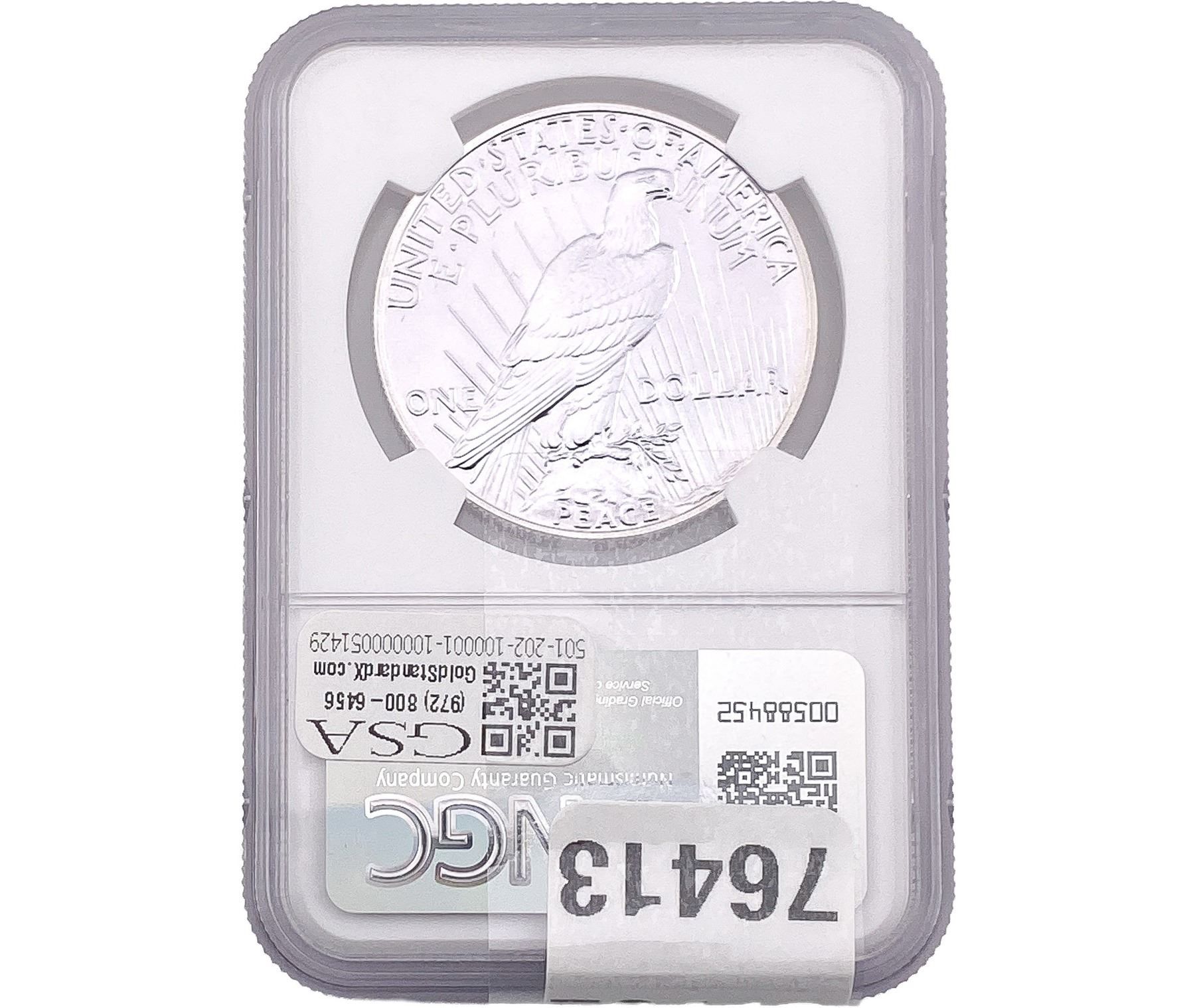 COINS AND CURRENCY LISTED IN GSA’S CATALOG AS GRADED AND ENCAPSULATED BY PCGS, NGC, ANACS, ICG, PCGS CURRENCY, PMG, PCGS BANKNOTE GRADING, CMC OR ANY OTHER THIRD-PARTY GRADING SERVICE ARE LIKEWISE SOLD “AS-IS” EXCEPT AS EXPRESSLY SET FORTH HEREIN. ALL THIRD-PARTY GRADING SERVICE GUARANTEES, INCLUDING AUTHENTICITY, ARE THE SOLE RESPONSIBILITY OF THE THIRD-PARTY GRADING SERVICE AND NOT WARRANTIES OR GUARANTEES OF GSA. BIDDERS SHOULD CONTACT THESE THIRD-PARTY GRADING SERVICES DIRECTLY WITH RESPECT TO ANY CLAIMS OR QUESTIONS THEY MAY HAVE CONCERNING THEIR GUARANTEES AND WARRANTIES. BIDDERS ACKNOWLEDGE AND AGREE THAT AUCTIONEER IS NOT BOUND BY OR LIABLE FOR ANY OPINION OR CERTIFICATION BY ANY THIRD-PARTY GRADING SERVICE. REMOVAL OF A PRODUCT FROM ITS PROTECTIVE CASING OR HOLDER OR ALTERATION OF ANY COIN HOLDER WAIVES ALL RIGHTS CONCERNING THE PRODUCT CONTAINED THEREIN.