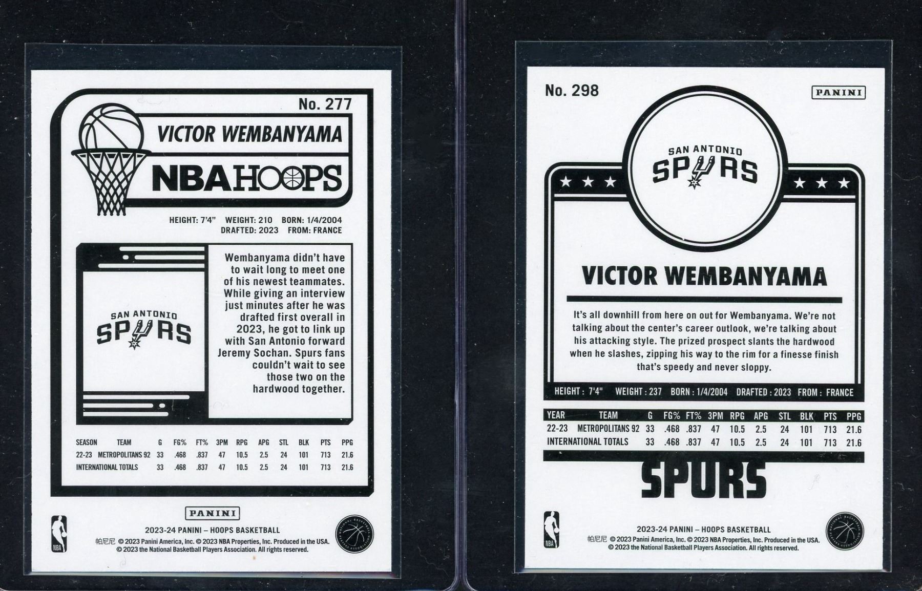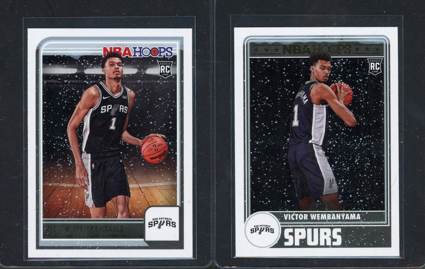 2x Victor Wembanyama base rookie cards from 2023-24 NBA Hoops set. Cards are in NM pack fresh condition.