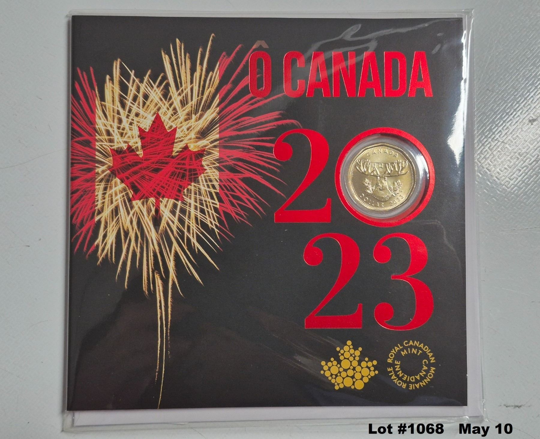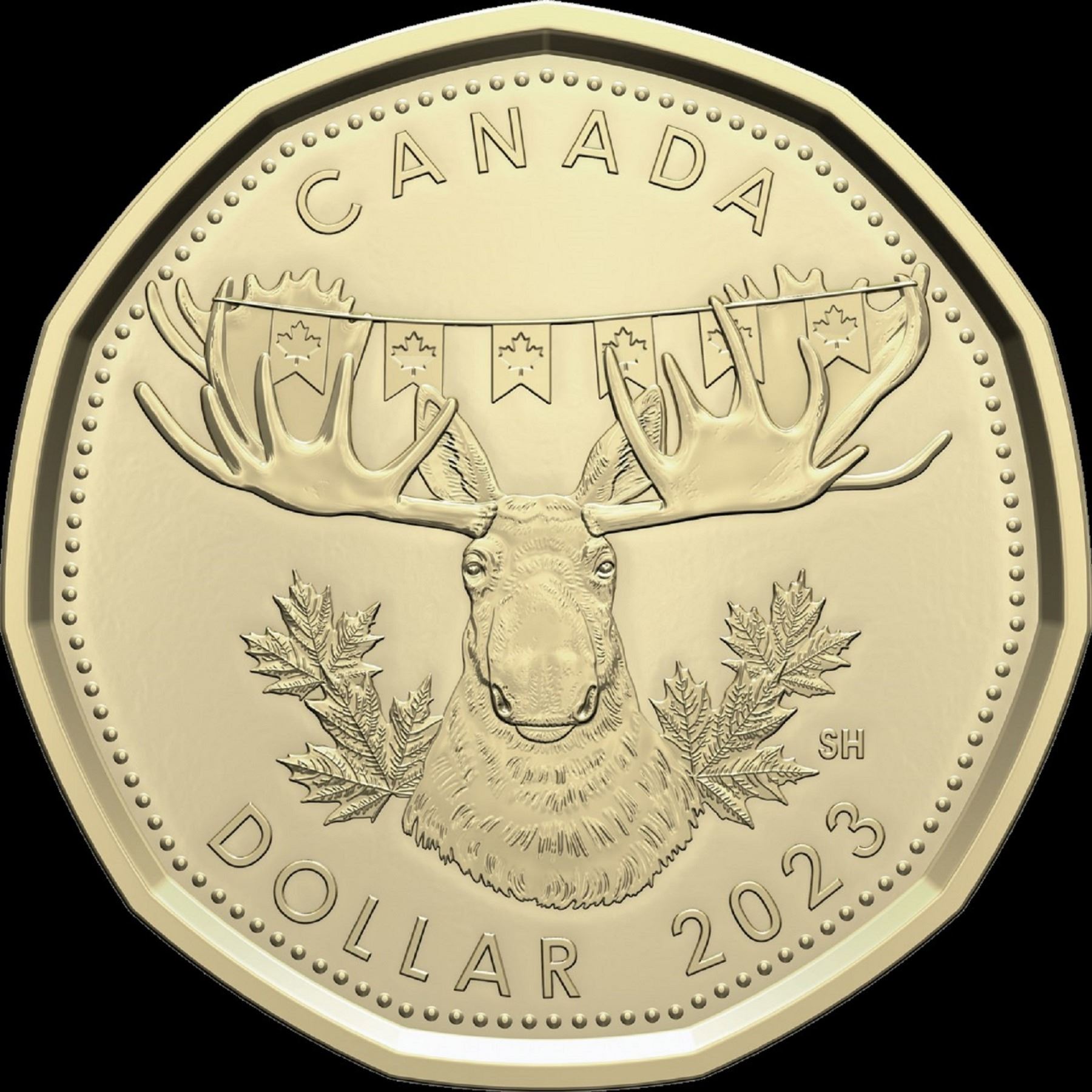2023 "O" CANADA Royal Canadian Mint Coin Set with Moose/Maple Leaf Loonie. - pristine new condition - Features Queen Elizabeth II with four pearls and the double date of her reign.