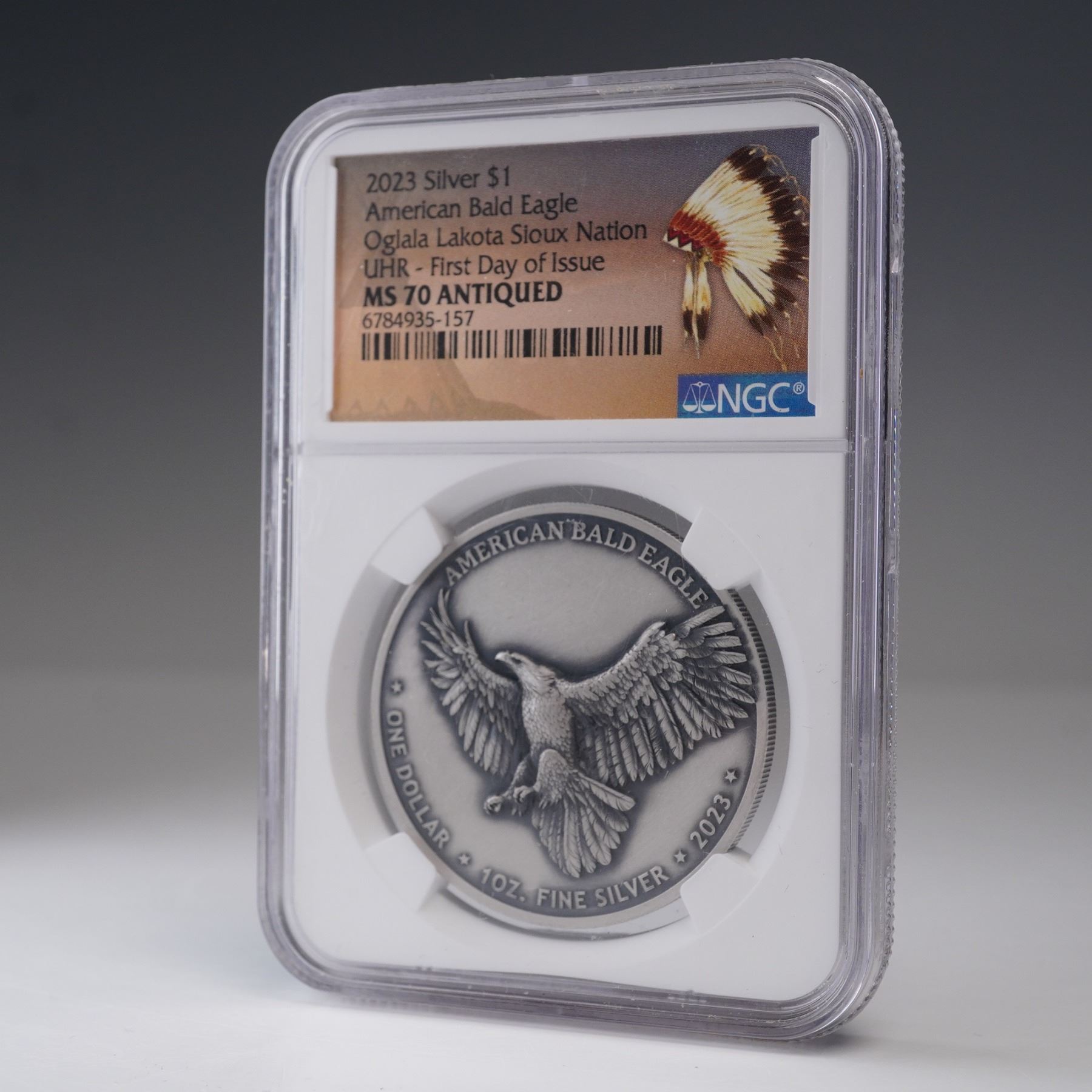 2023 Oglala Lakota Sioux Bald Eagle Dollar Coin NGC Graded MS 70 ANTIQUED