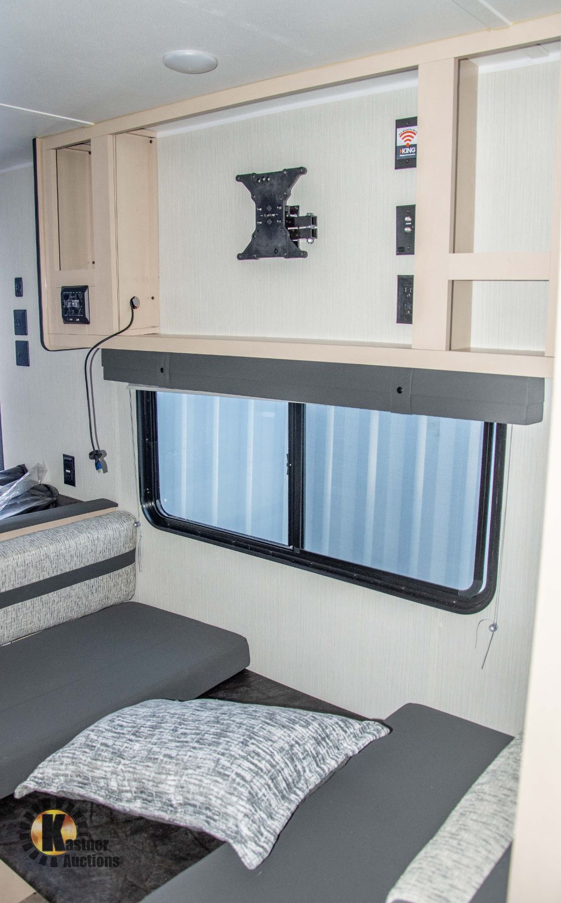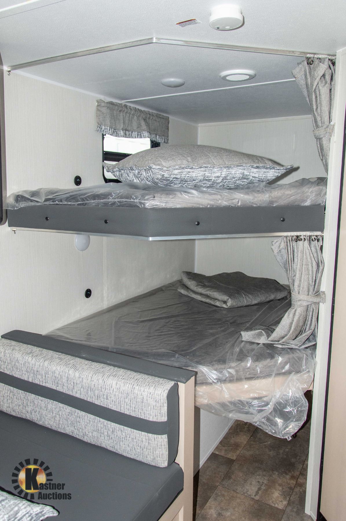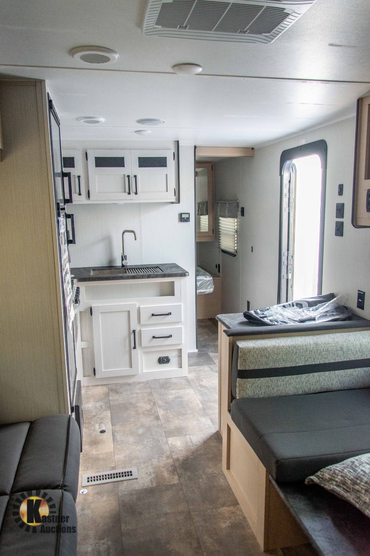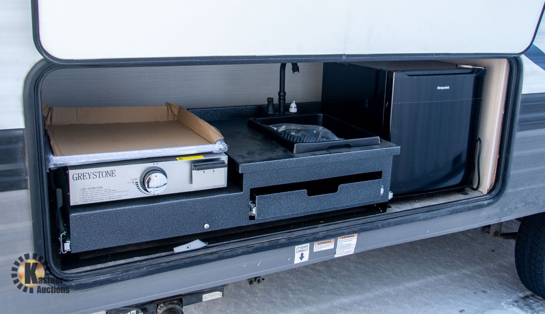 HOLIDAY TRAILER FEATURES FULL POWER AWNING, SLIDELL KITCHEN FRONT BEDROOM WITH QUEEN SIZE BED, LARGE DOUBLE BUNKS AT REAR, PULL OUT LEATHER COUCH, JACK AND JILL BOOTH, AIR CONDITIONING, TIN WALLS, GREYSTONE 3 BURNER STOVE, GREYSTONE MICROWAVE, GREYSTONE FRIDGE FREEZER COMBO, DOUBLE SINK, FULL SHOWER, TOILET AND SINK. EXTERIOR PULL OUT KITCHEN.