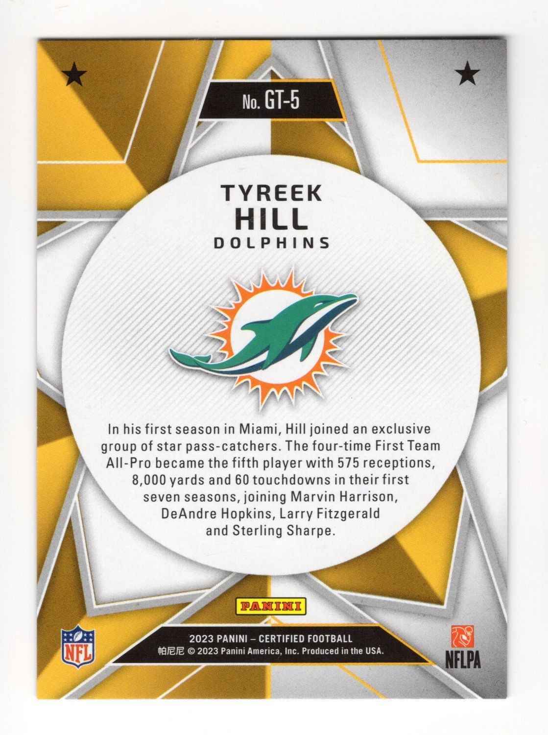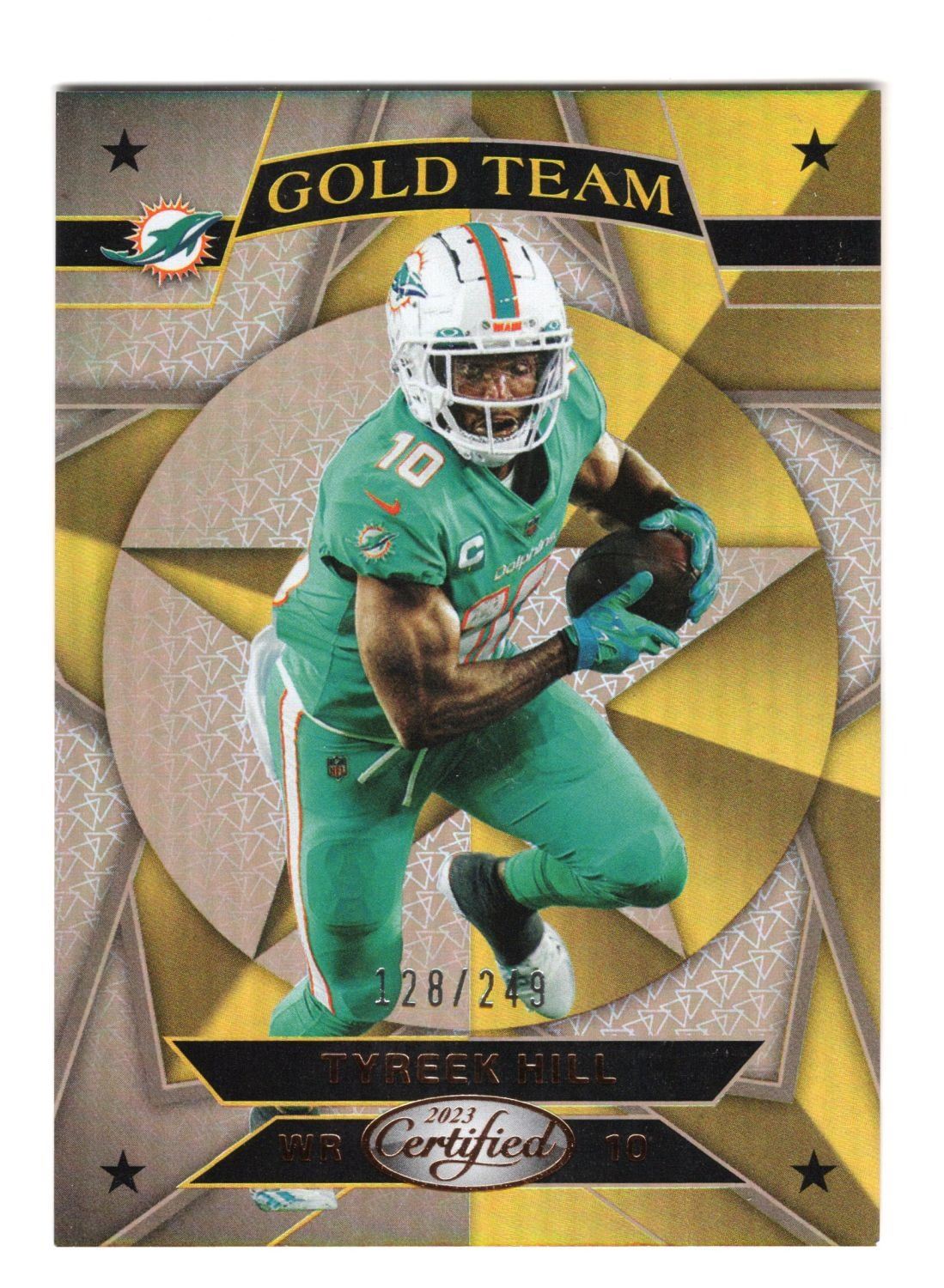 2023 Panini Certified Gold Team Tyreek Hill GT-5 Numbered Card 128/249. Rare Card of Rare Player