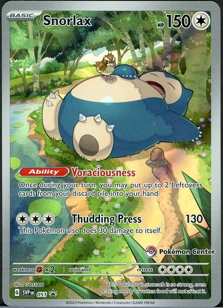 2023 Pokémon Center exclusive promo of Snorlax. Card is NM
