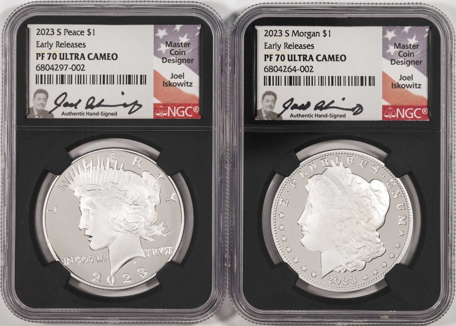 2023-S $1 Proof Morgan & Peace Silver Dollar Set NGC PF70 Ultra Cameo ER Iskowitz Sig