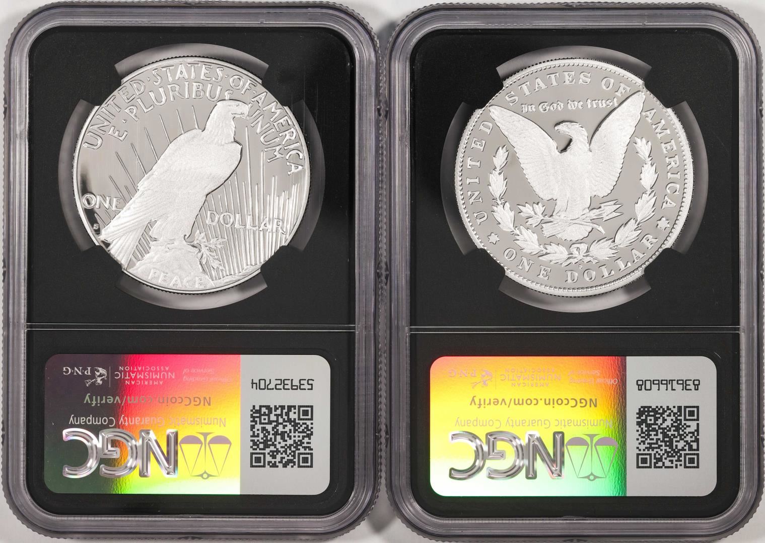 One 2023-S $1 Proof Morgan & Peace Silver Dollar Set NGC PF70 Ultra Cameo ER Iskowitz Sig. NGC Certified.