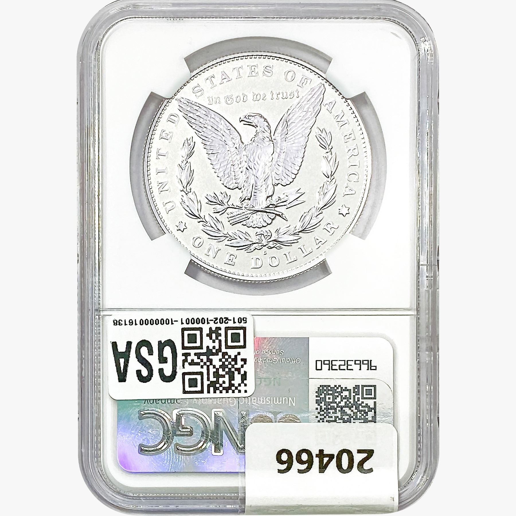 e. Coins sold referencing a third-party grading service are sold “AS IS” without any express or implied warranty, except for a guarantee by GSA that they are genuine. Removal or alteration of the holder, voids all of Bidder’s claims concerning that Product. Certain warranties may be available from the grading services and Bidders are referred to them for further details: Numismatic Guaranty Corporation (NGC), PO Box 4776, Sarasota, FL 34230, www.ngccoin.com/services/writtenguarantee.asp; Professional Coin Grading Services (PCGS), PO Box 9458, Newport Beach, CA 92658, www.pcgs.com/guarantee.html; ANACS, 6555 S. Kenton St., Ste. 303, Englewood, CO 80111; and Independent Coin Grading Co. (ICG), 7901 East Bellview, Ave., Suite 50, Englewood, CO 80111.