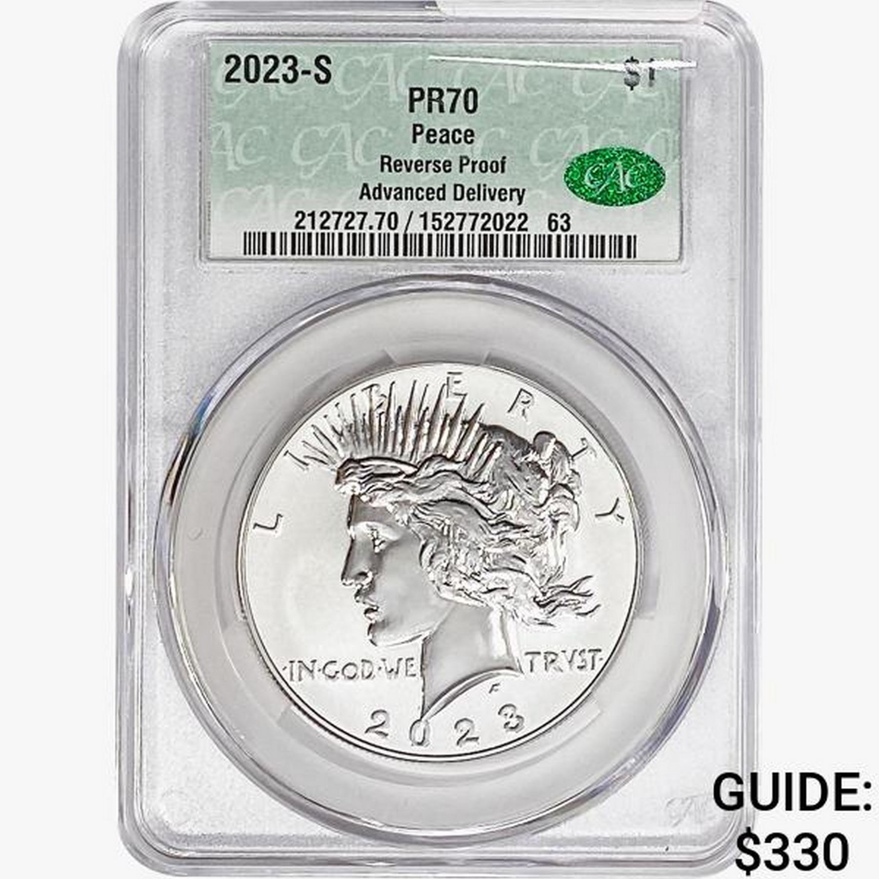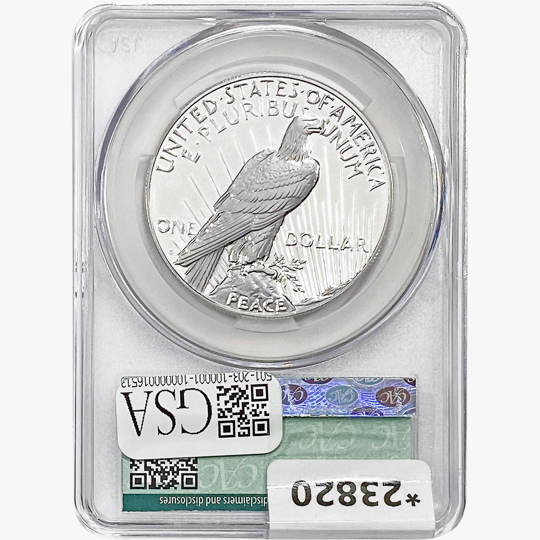 2023-S Silver Peace Dollar CAC PR70 Reverse Proof