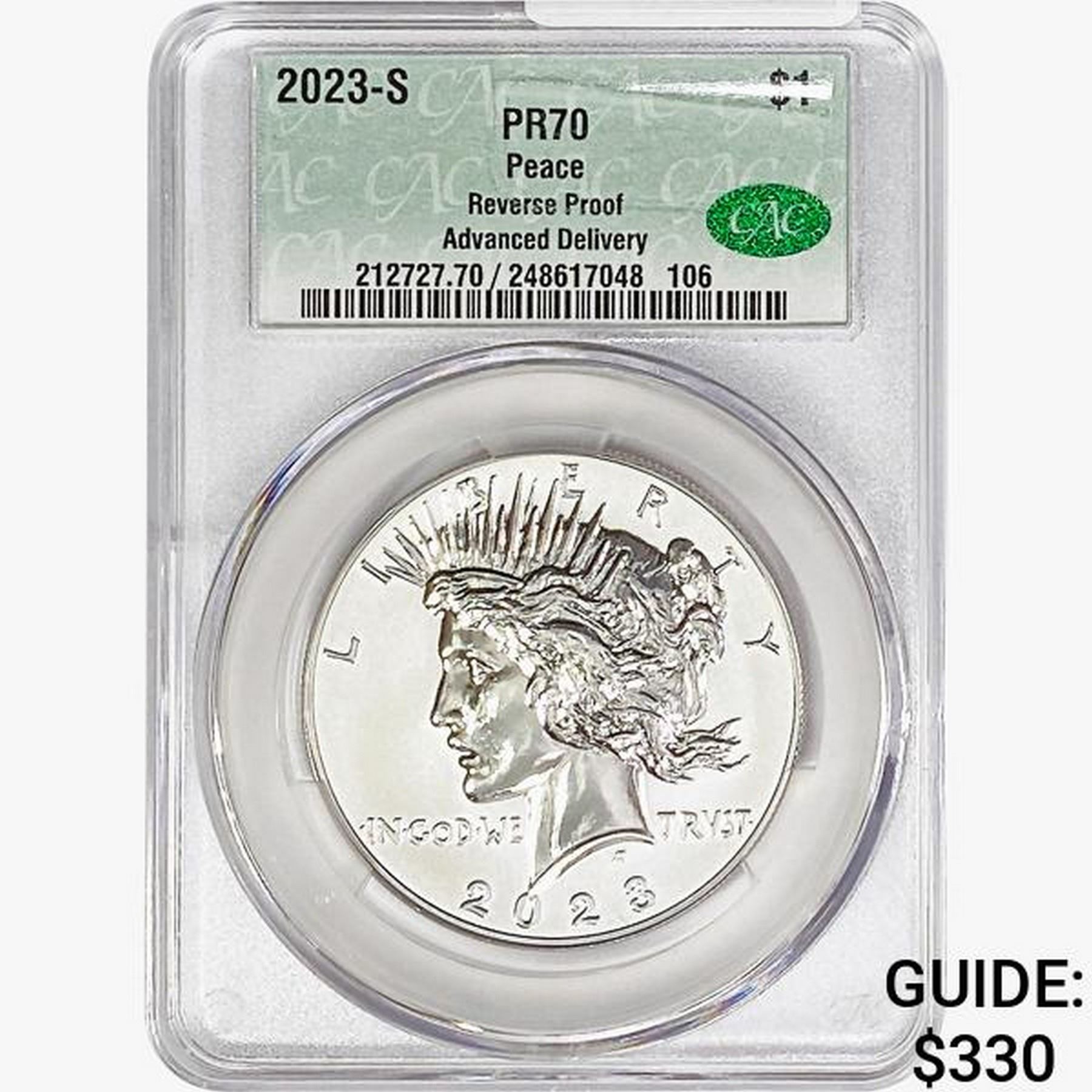 2023-S Silver Peace Dollar CAC PR70 Reverse Proof