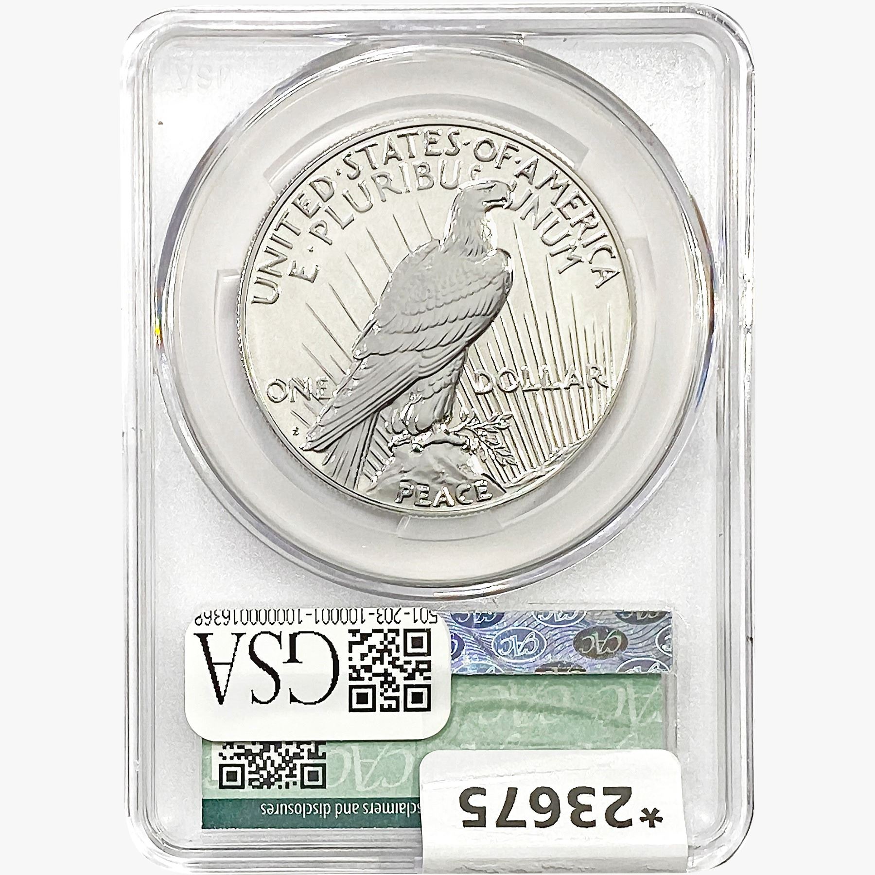 2023-S Silver Peace Dollar CAC PR70 Reverse Proof