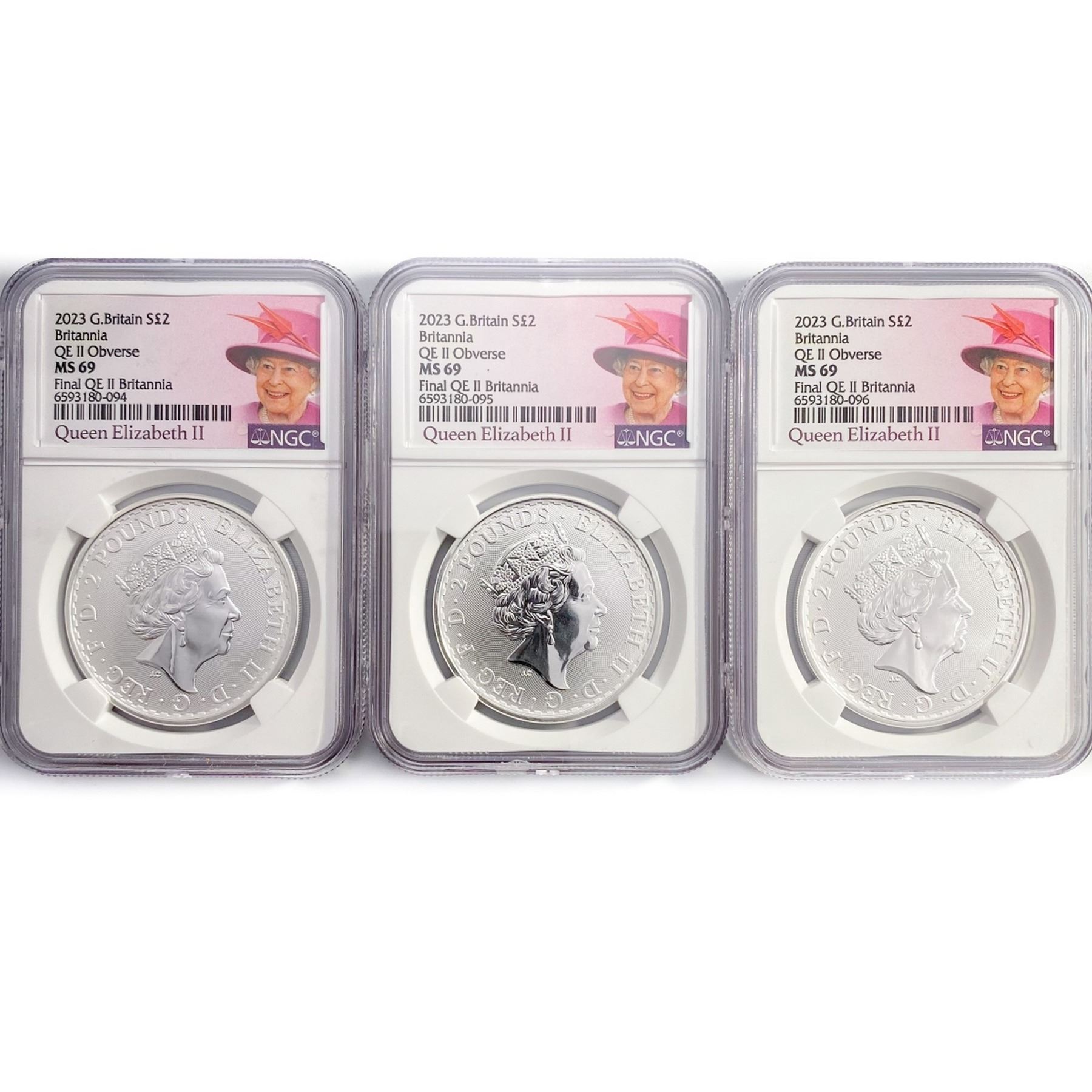 2023 Set (3) 1oz G.B. S2£ NGC MS69 Q. Elizabeth