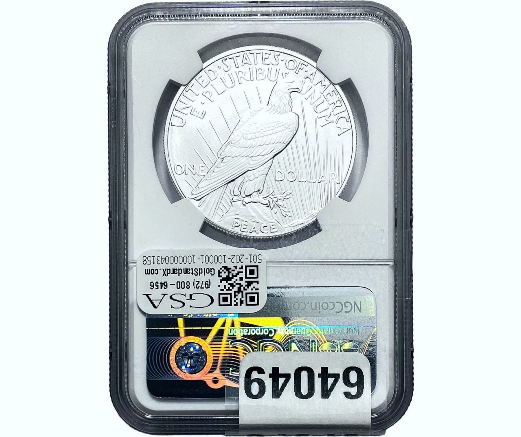 e. Coins sold referencing a third-party grading service are sold “AS IS” without any express or implied warranty, except for a guarantee by GSA that they are genuine. Removal or alteration of the holder, voids all of Bidder’s claims concerning that Product. Certain warranties may be available from the grading services and Bidders are referred to them for further details: Numismatic Guaranty Corporation (NGC), PO Box 4776, Sarasota, FL 34230, www.ngccoin.com/services/writtenguarantee.asp; Professional Coin Grading Services (PCGS), PO Box 9458, Newport Beach, CA 92658, www.pcgs.com/guarantee.html; ANACS, 6555 S. Kenton St., Ste. 303, Englewood, CO 80111; and Independent Coin Grading Co. (ICG), 7901 East Bellview, Ave., Suite 50, Englewood, CO 80111.