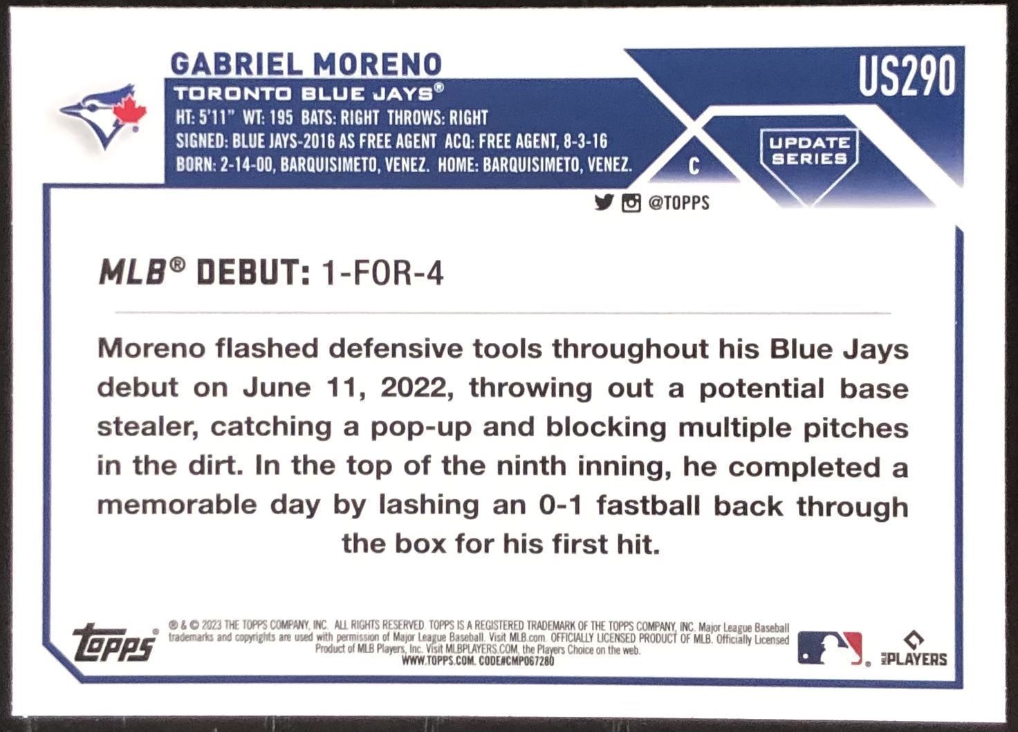 Card #US290 MLB, baseball, rookie