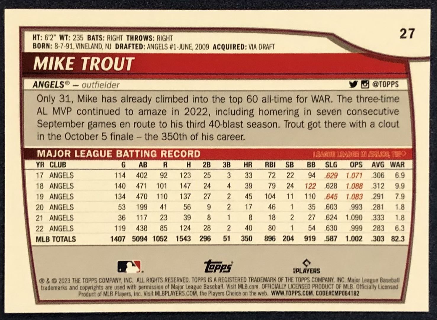 Card #27 MLB, baseball