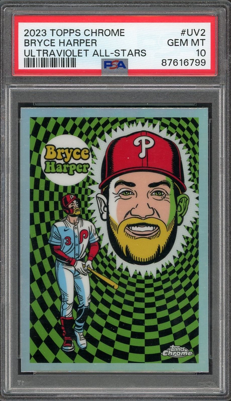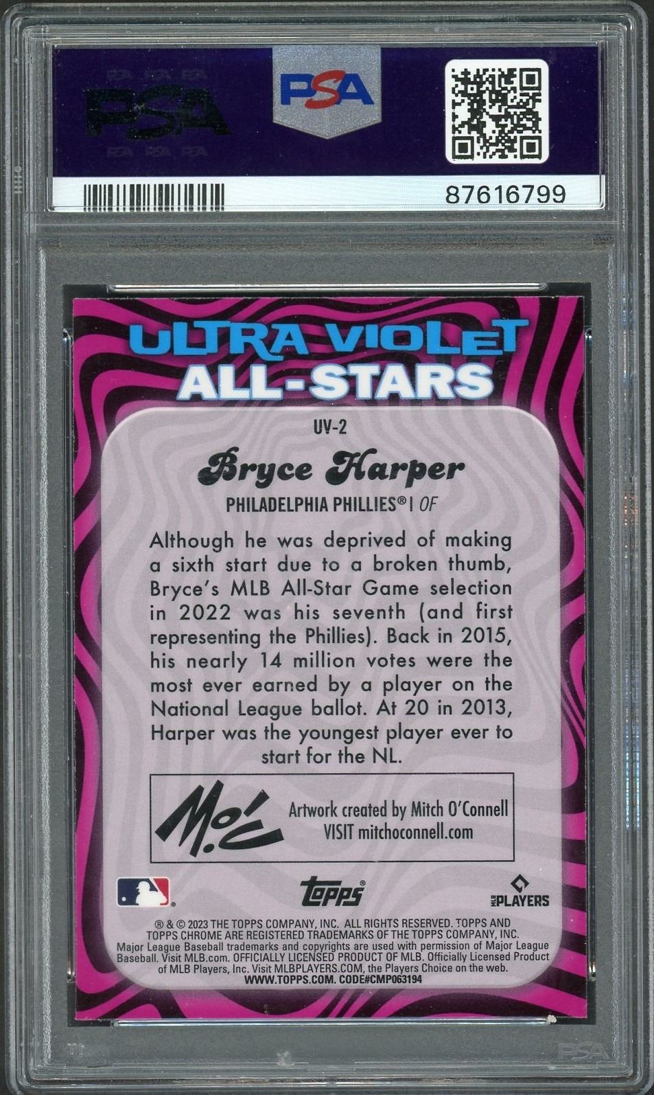 2023 Topps Chrome Ultra Violet All-Stars SP(*Case Hit*) of Philadelphia Phillies star Bryce Harper graded a gem mint 10 by PSA!