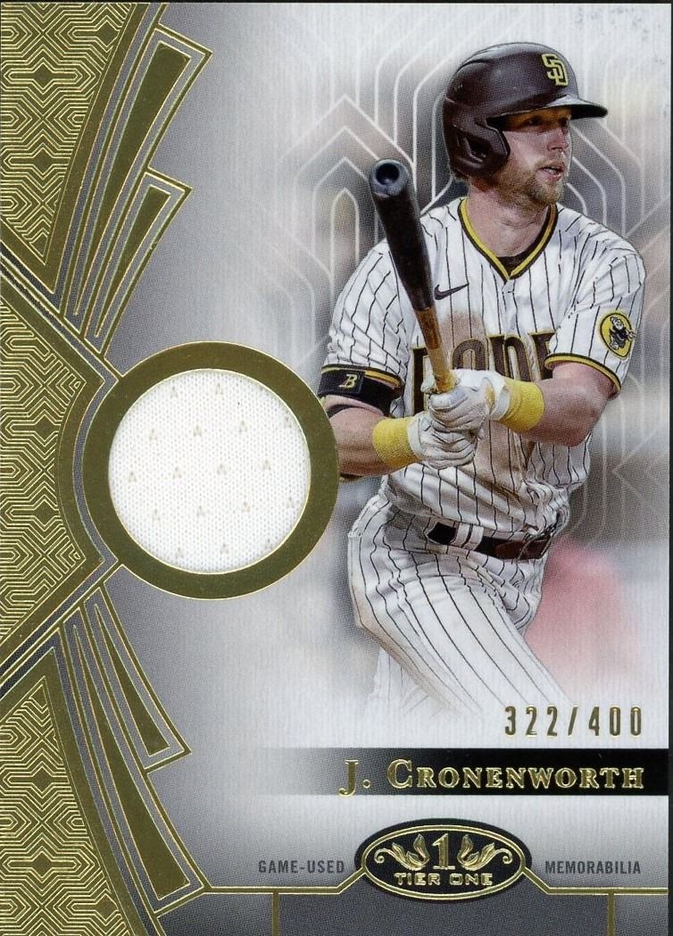 2023 Topps Tier One game used Relic card of young San Diego Padres infielder Jake Cronenworth numbered to 400