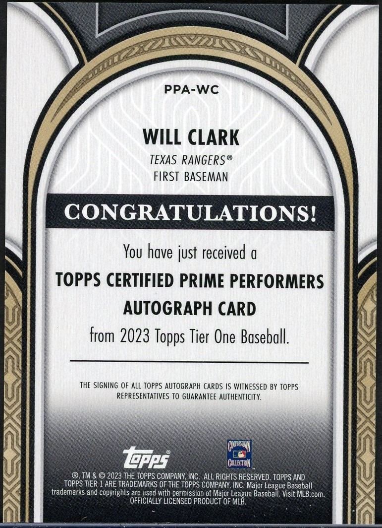 2023 Topps Tier One "Prime Performers" Will Clark autograph #77/149