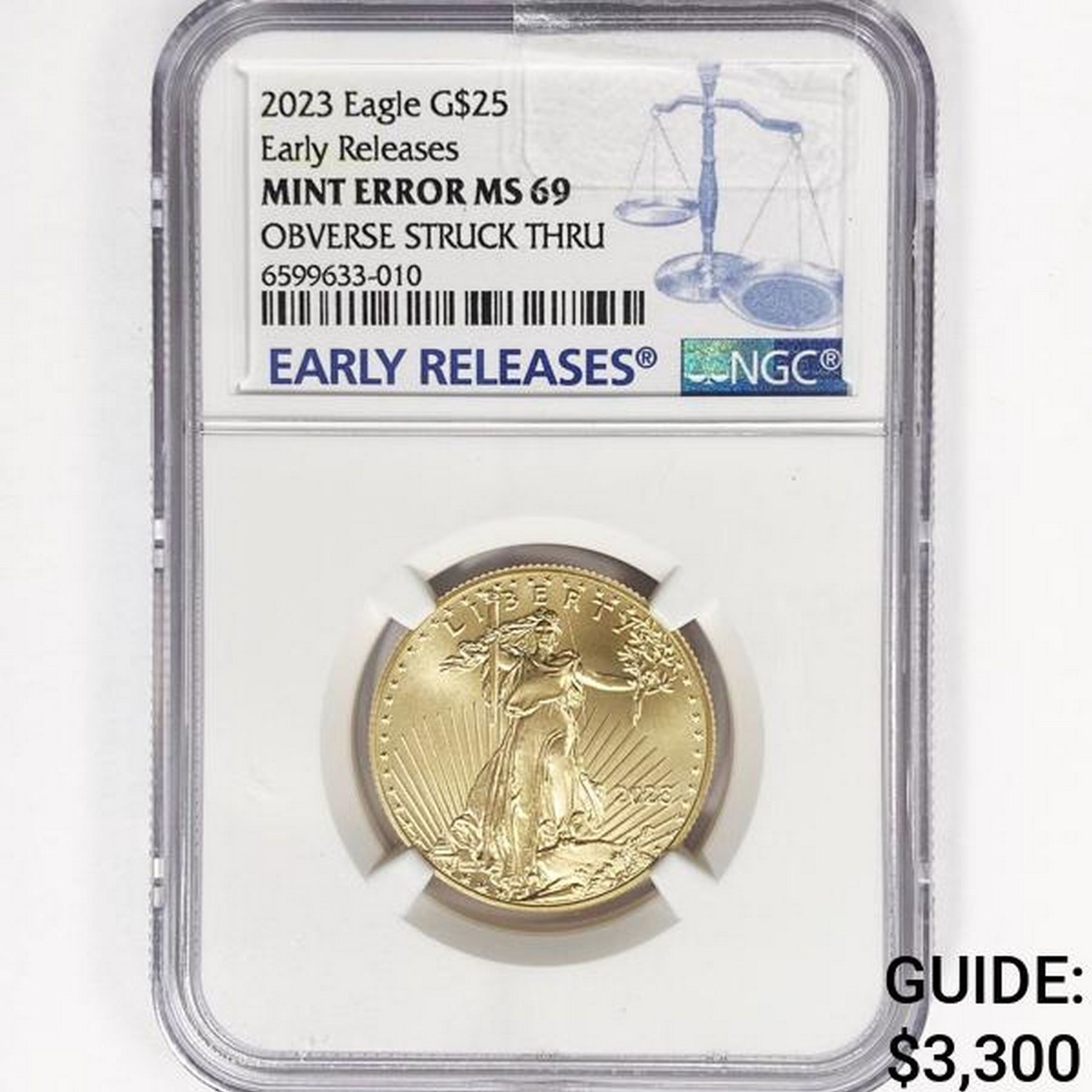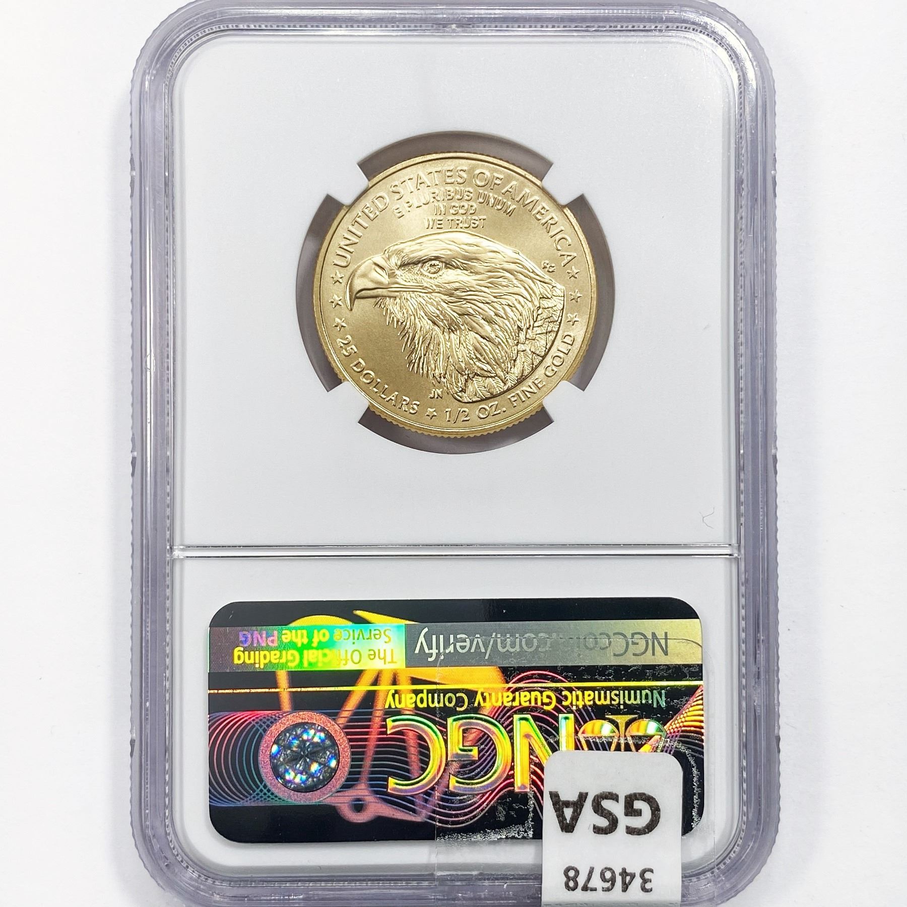2023 US 1/2oz Gold 25E NGC MS69 Obv Struck Thru