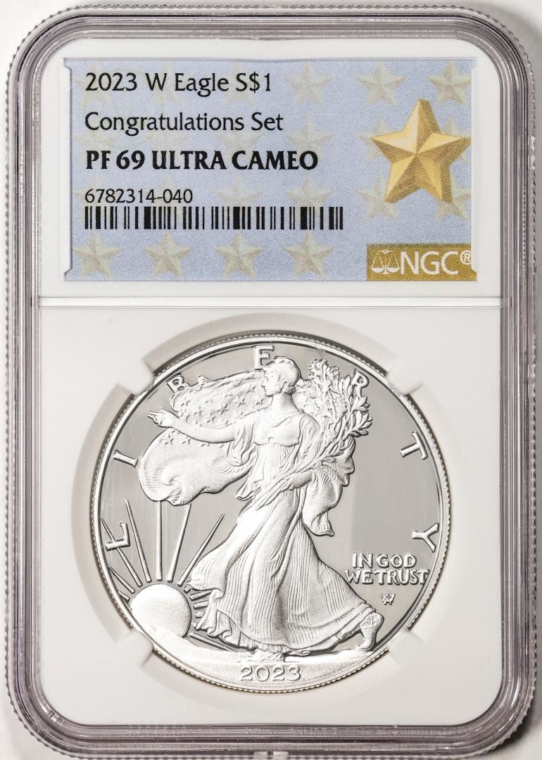 2023-W $1 Proof American Silver Eagle Coin NGC PF69 Ultra Cameo Congratulations Set