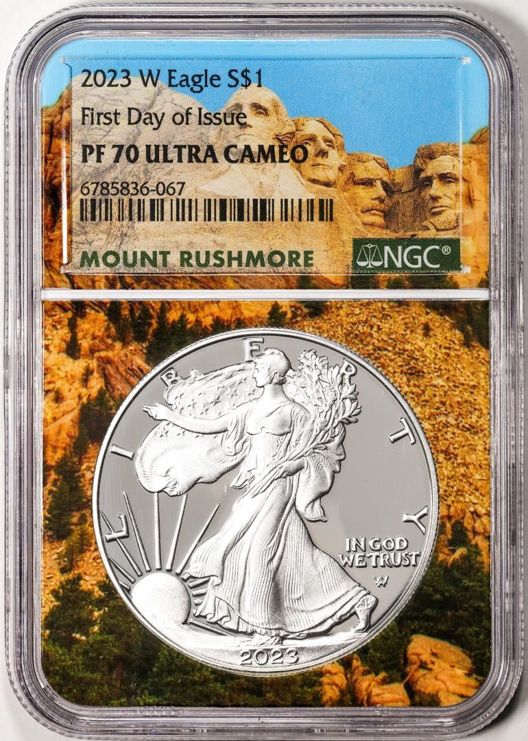2023-W $1 Proof American Silver Eagle Coin NGC PF70 Ultra Cameo FDOI Mount Rushmore