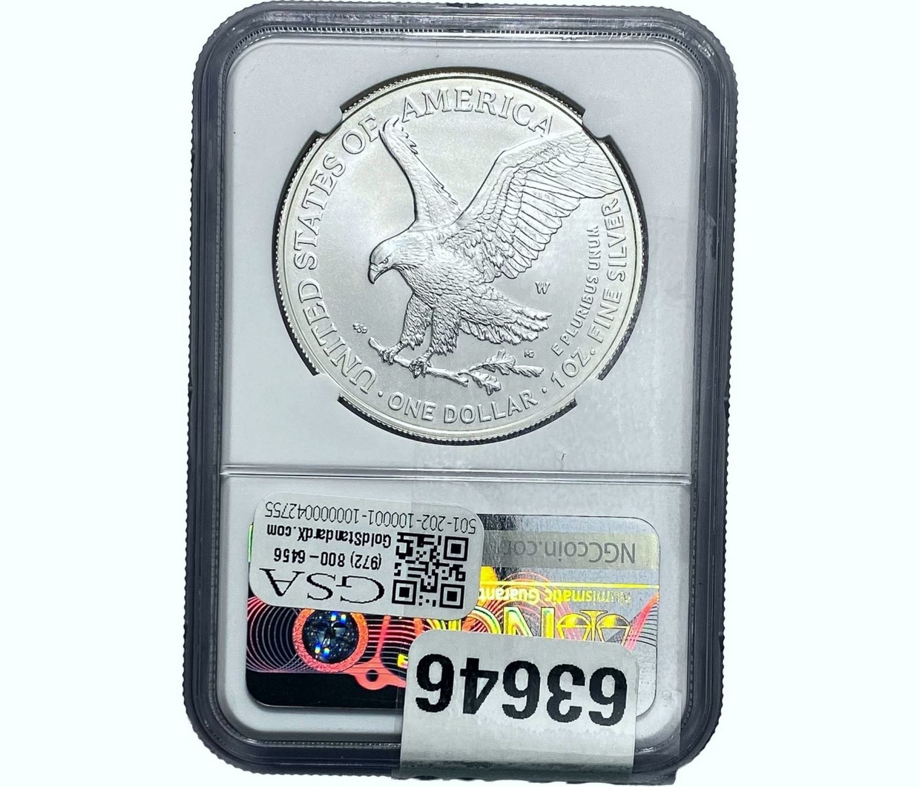 e. Coins sold referencing a third-party grading service are sold “AS IS” without any express or implied warranty, except for a guarantee by GSA that they are genuine. Removal or alteration of the holder, voids all of Bidder’s claims concerning that Product. Certain warranties may be available from the grading services and Bidders are referred to them for further details: Numismatic Guaranty Corporation (NGC), PO Box 4776, Sarasota, FL 34230, www.ngccoin.com/services/writtenguarantee.asp; Professional Coin Grading Services (PCGS), PO Box 9458, Newport Beach, CA 92658, www.pcgs.com/guarantee.html; ANACS, 6555 S. Kenton St., Ste. 303, Englewood, CO 80111; and Independent Coin Grading Co. (ICG), 7901 East Bellview, Ave., Suite 50, Englewood, CO 80111.
