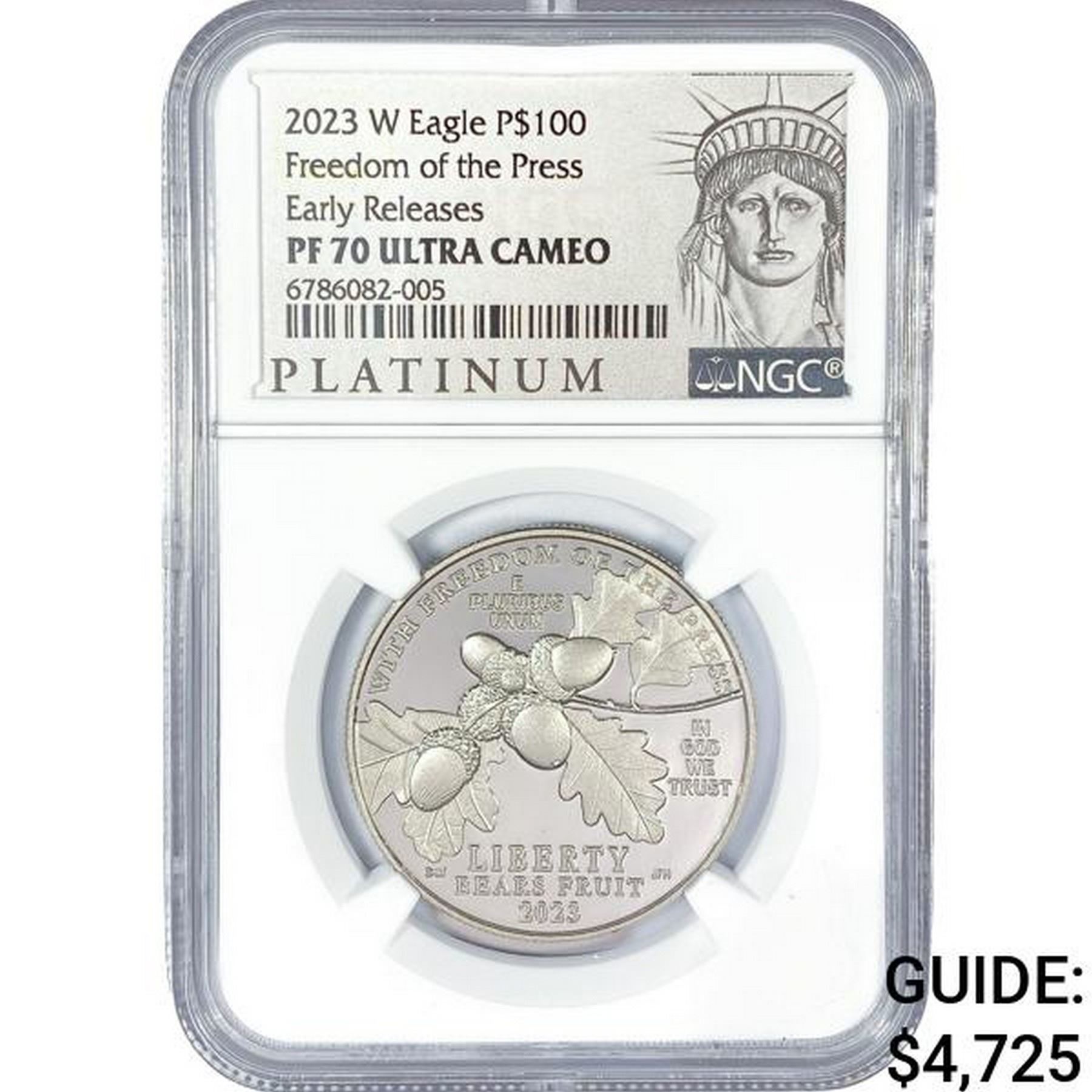2023-W $100 FOP 1OZ PLAT FS PCGS PR70 DCAM Sil Lbl