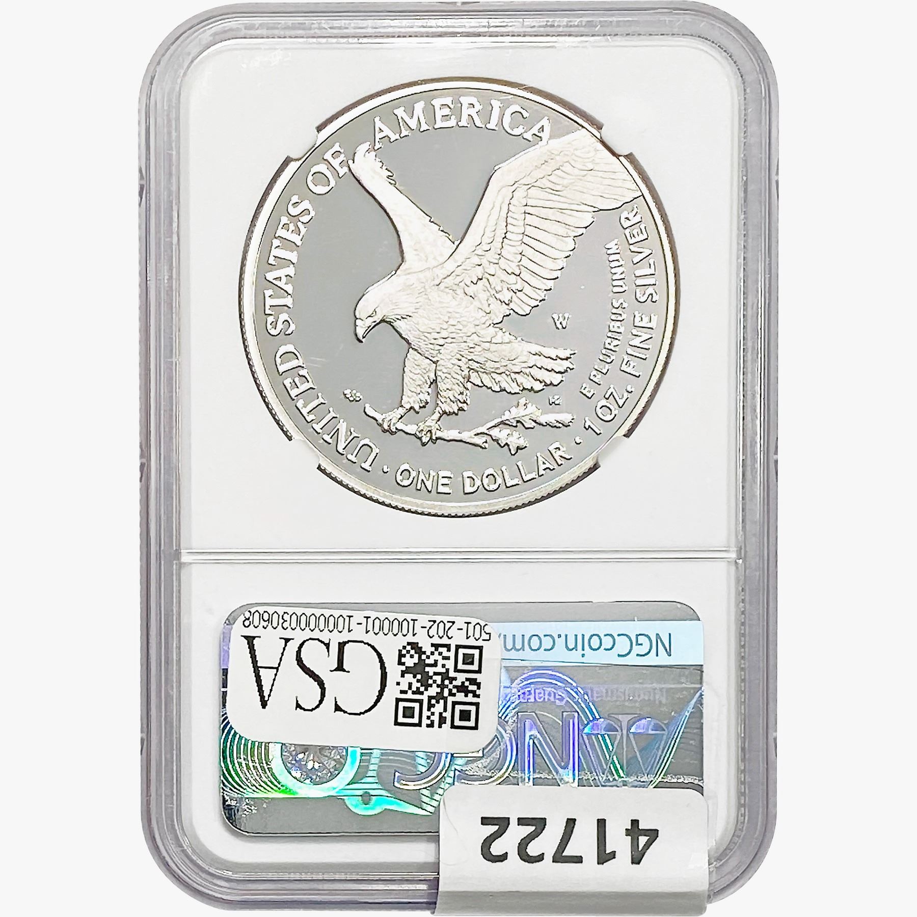e. Coins sold referencing a third-party grading service are sold “AS IS” without any express or implied warranty, except for a guarantee by GSA that they are genuine. Removal or alteration of the holder, voids all of Bidder’s claims concerning that Product. Certain warranties may be available from the grading services and Bidders are referred to them for further details: Numismatic Guaranty Corporation (NGC), PO Box 4776, Sarasota, FL 34230, www.ngccoin.com/services/writtenguarantee.asp; Professional Coin Grading Services (PCGS), PO Box 9458, Newport Beach, CA 92658, www.pcgs.com/guarantee.html; ANACS, 6555 S. Kenton St., Ste. 303, Englewood, CO 80111; and Independent Coin Grading Co. (ICG), 7901 East Bellview, Ave., Suite 50, Englewood, CO 80111.
