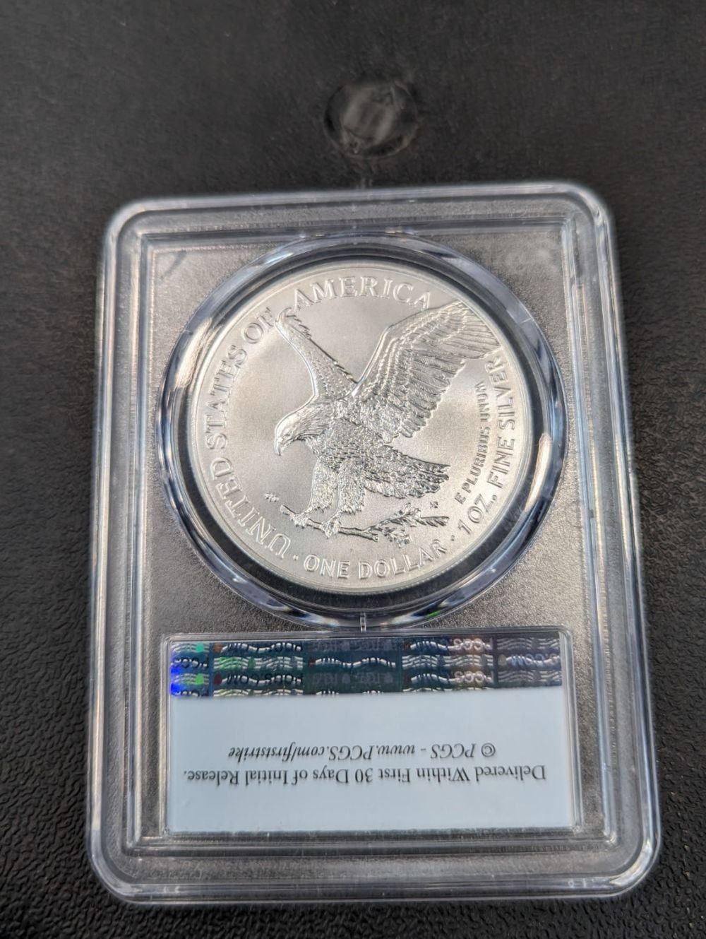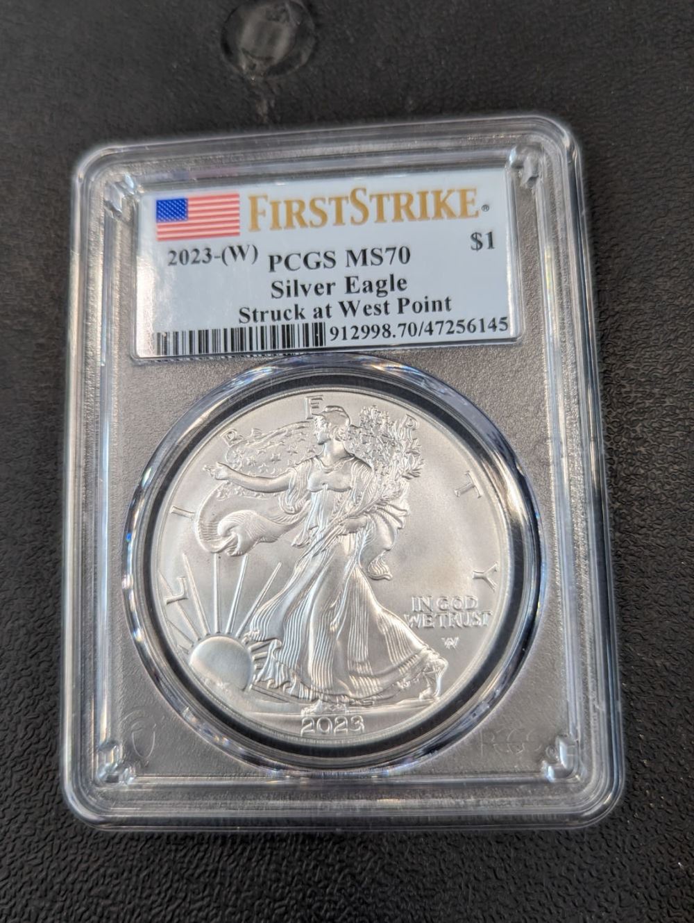 & nbsp;A 2023 (W) US Sliver Eagle Dollar PCGS MS70 First Strike. Snow white spot free coin that is stunning. Struck at the West Point Mint Per PCGS this is a great future collectible.