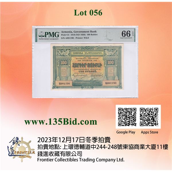 Armenia, 1919 (ND 1920), 100 Rubles, A981190, PMG 66EPQ.56 - Armenia, 1919 (ND 1920), 100 Rubles, A981190, PMG 66EPQ.