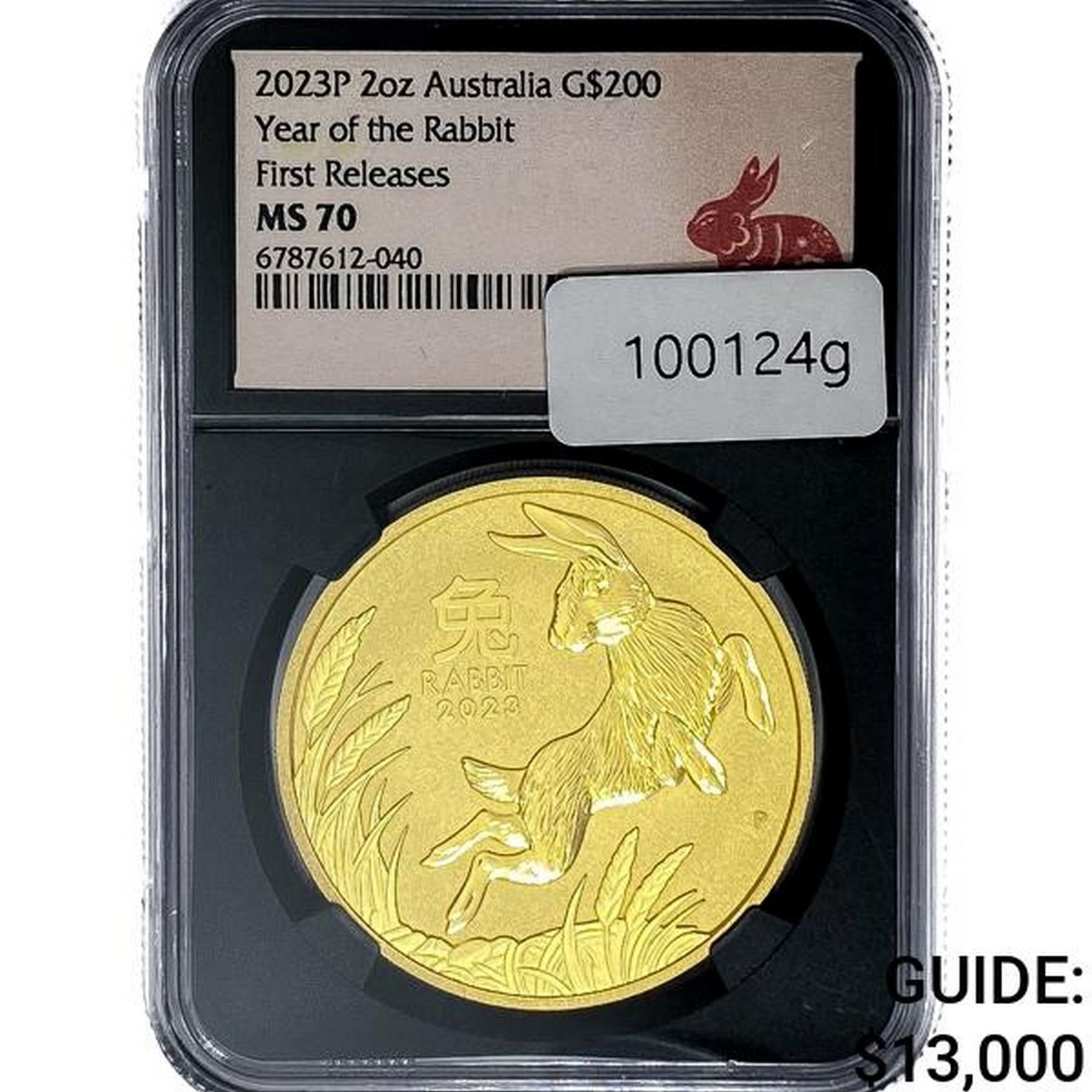 2023P 2oz Australia Gold $200 Rabbit NGC MS70