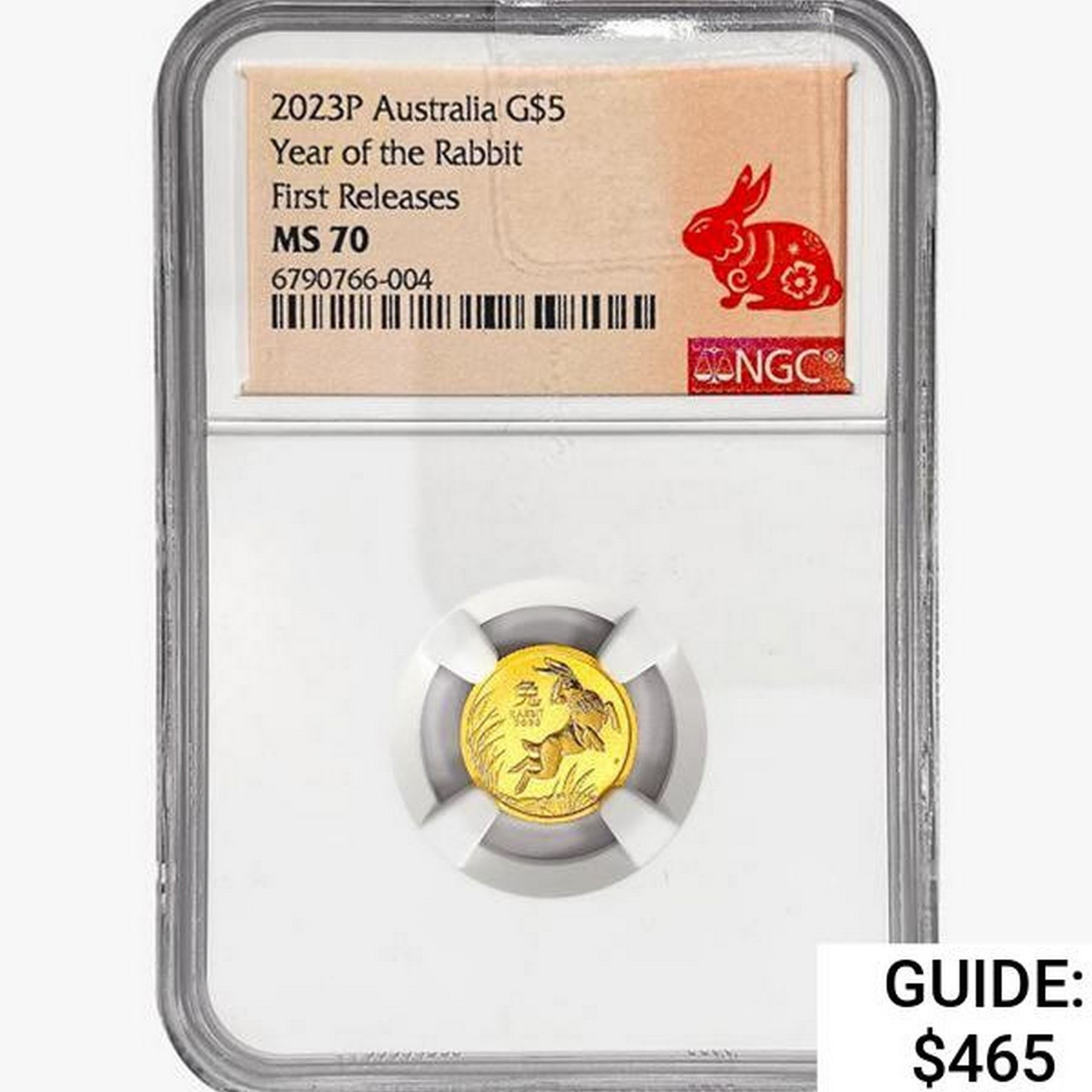 2023P $5 1/20oz. Gold Australia Rabbit NGC MS70