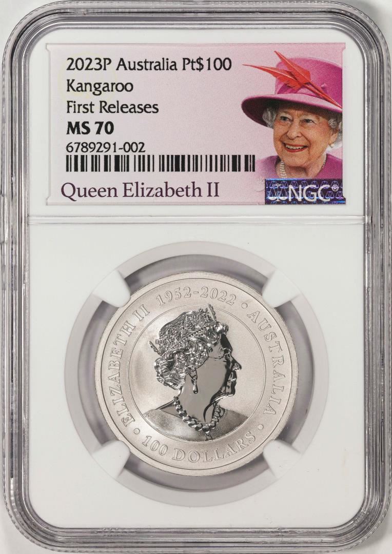 One 2023P Australia $100 Kangaroo 1oz Platinum Coin NGC MS70 First Releases. NGC Certified.