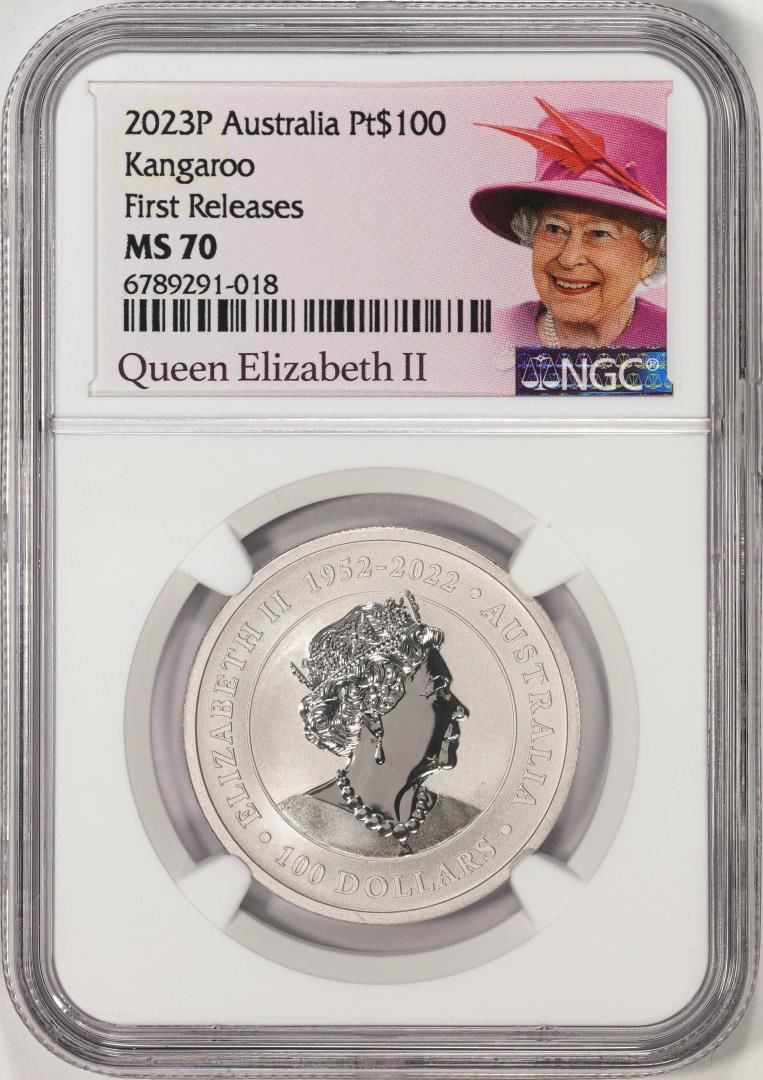 One 2023P Australia $100 Kangaroo 1oz Platinum Coin NGC MS70 First Releases. NGC Certified.