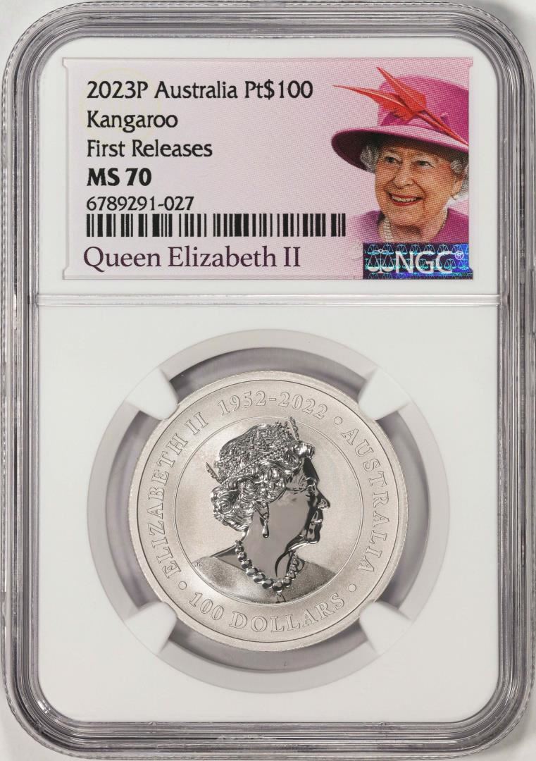One 2023P Australia $100 Kangaroo 1oz Platinum Coin NGC MS70 First Releases. NGC Certified.