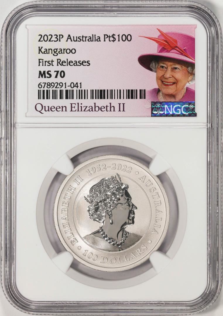 One 2023P Australia $100 Kangaroo 1oz Platinum Coin NGC MS70 First Releases. NGC Certified.