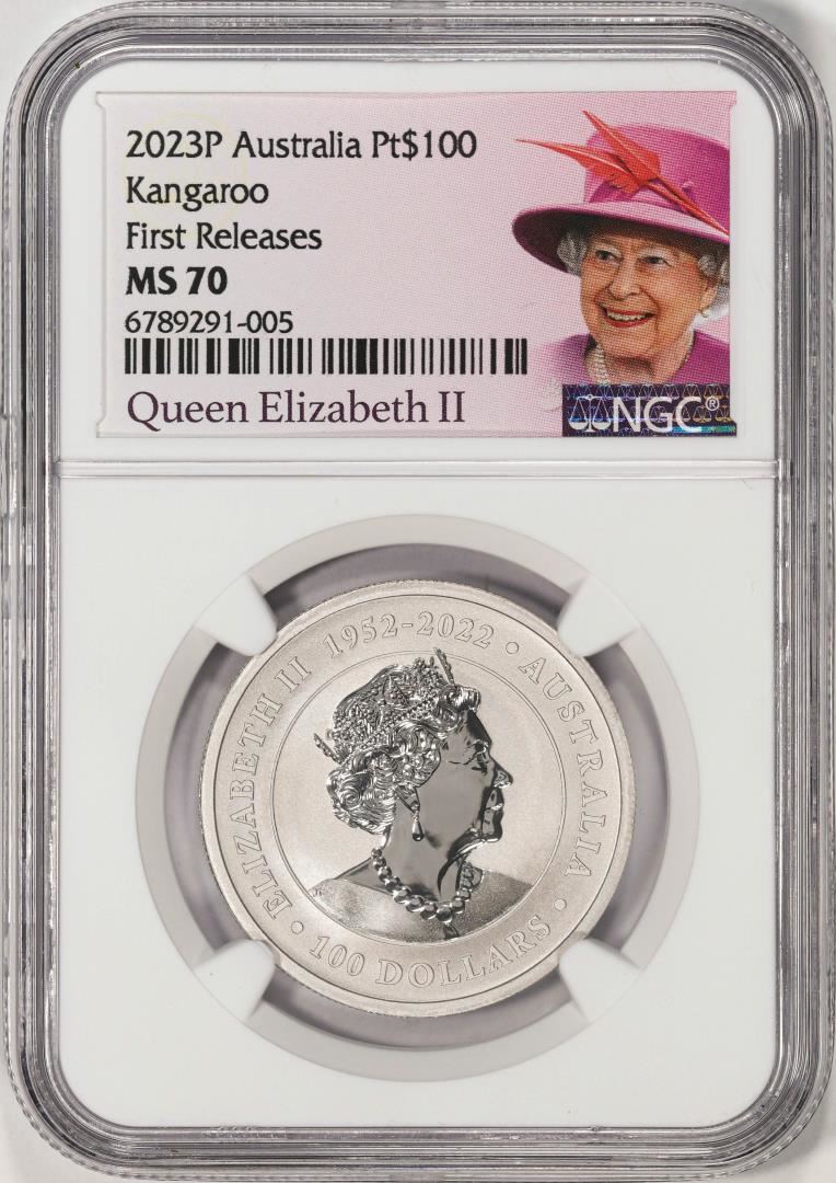 One 2023P Australia $100 Kangaroo 1oz Platinum Coin NGC MS70 First Releases. NGC Certified.