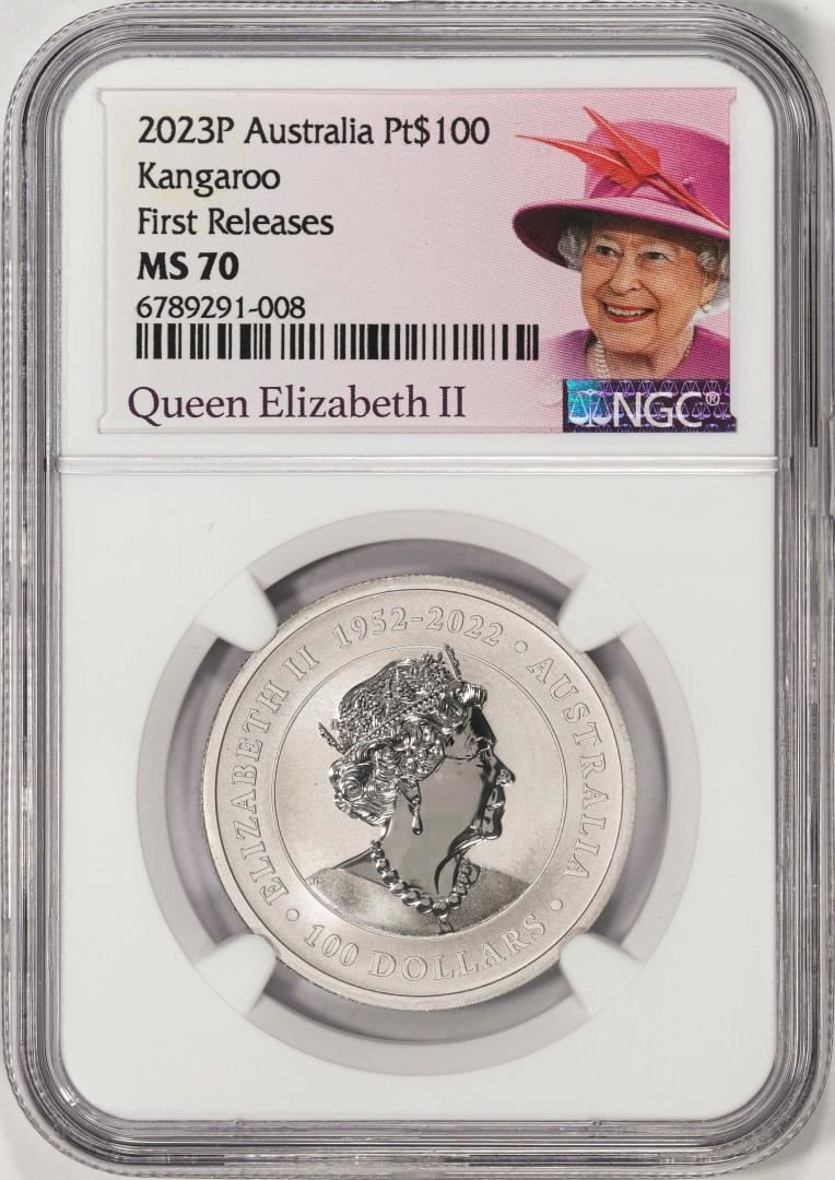 One 2023P Australia $100 Kangaroo 1oz Platinum Coin NGC MS70 First Releases. NGC Certified.