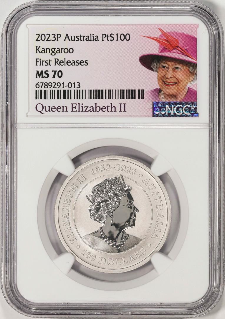 One 2023P Australia $100 Kangaroo 1oz Platinum Coin NGC MS70 First Releases. NGC Certified.