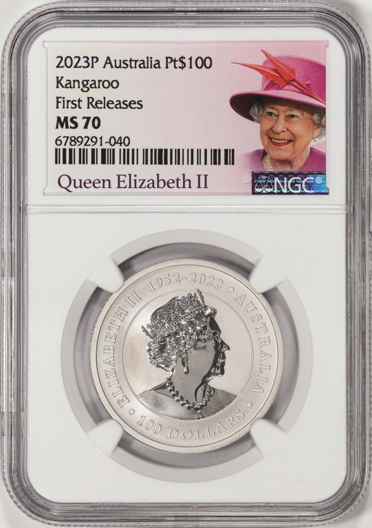 One 2023P Australia $100 Kangaroo 1oz Platinum Coin NGC MS70 First Releases. NGC Certified.