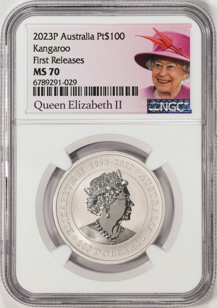 One 2023P Australia $100 Kangaroo 1oz Platinum Coin NGC MS70 First Releases. NGC Certified.