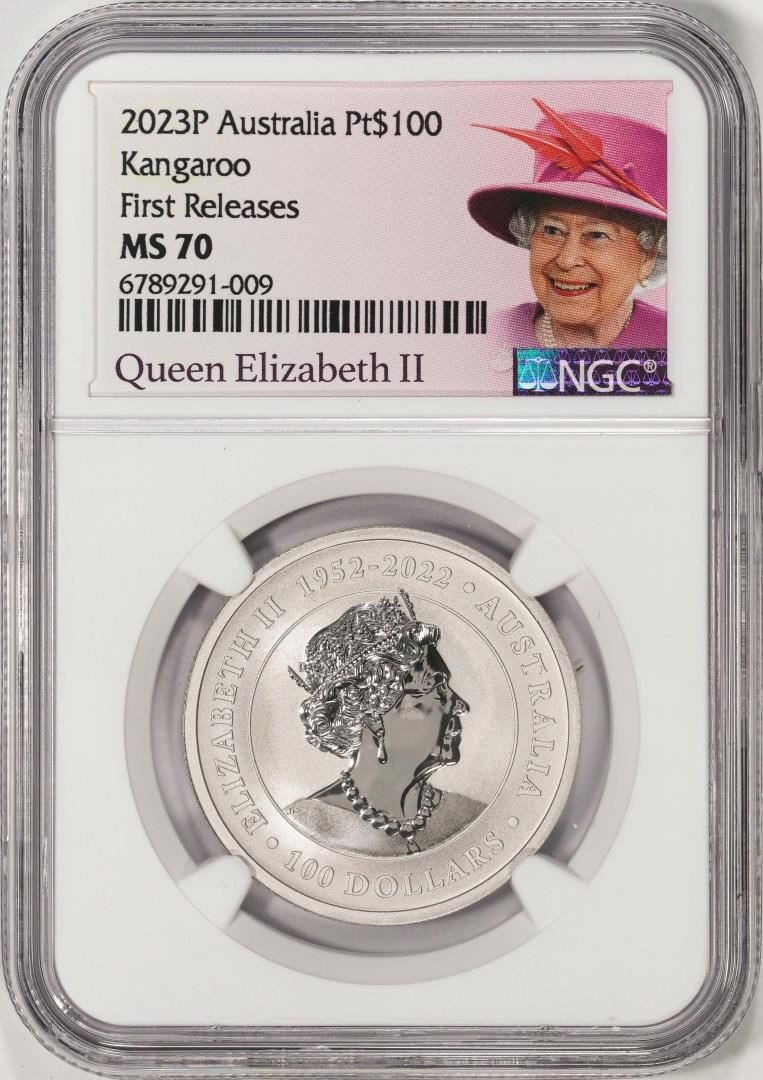 One 2023P Australia $100 Kangaroo 1oz Platinum Coin NGC MS70 First Releases. NGC Certified.