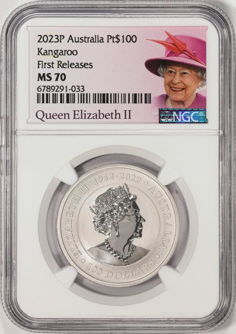 One 2023P Australia $100 Kangaroo 1oz Platinum Coin NGC MS70 First Releases. NGC Certified.