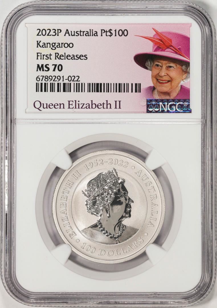 One 2023P Australia $100 Kangaroo 1oz Platinum Coin NGC MS70 First Releases. NGC Certified.