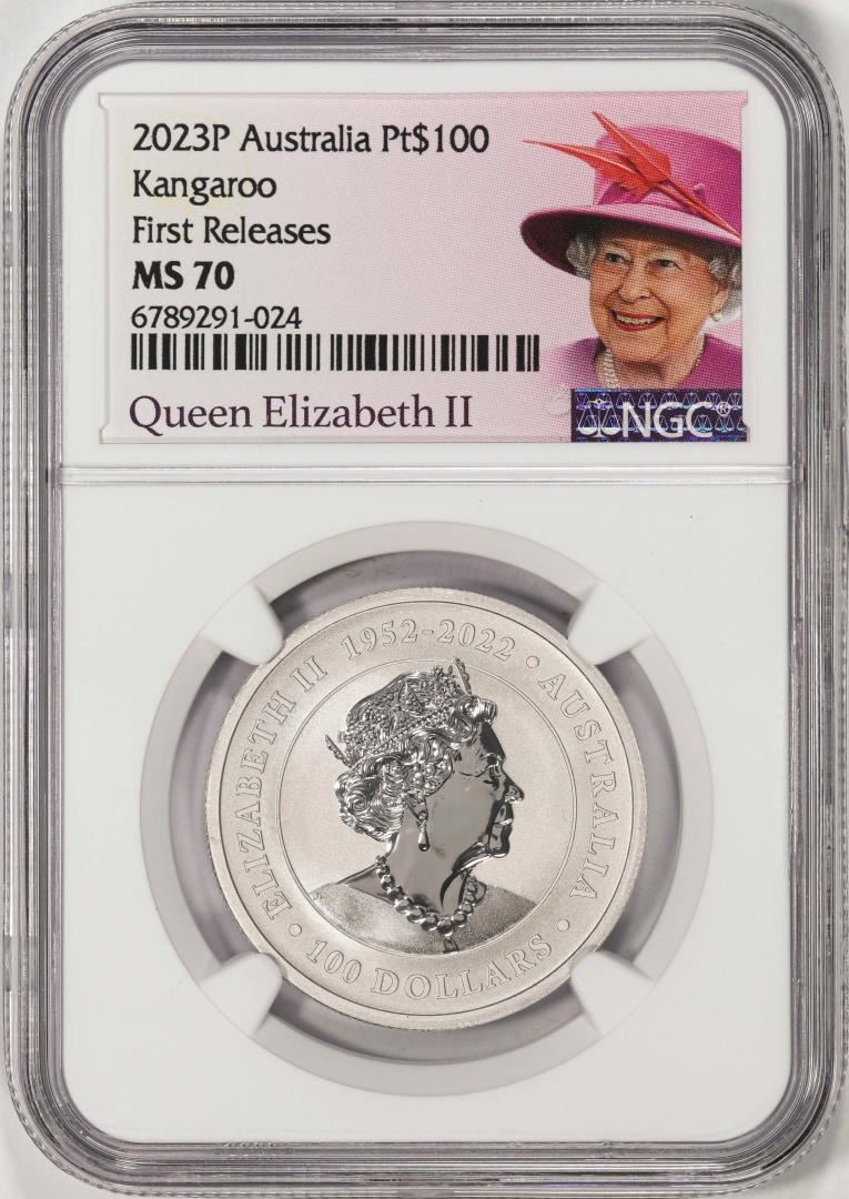 One 2023P Australia $100 Kangaroo 1oz Platinum Coin NGC MS70 First Releases. NGC Certified.