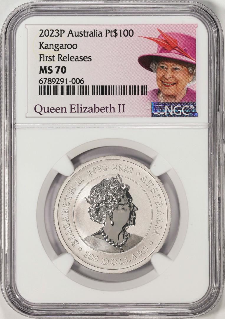 One 2023P Australia $100 Kangaroo 1oz Platinum Coin NGC MS70 First Releases. NGC Certified.