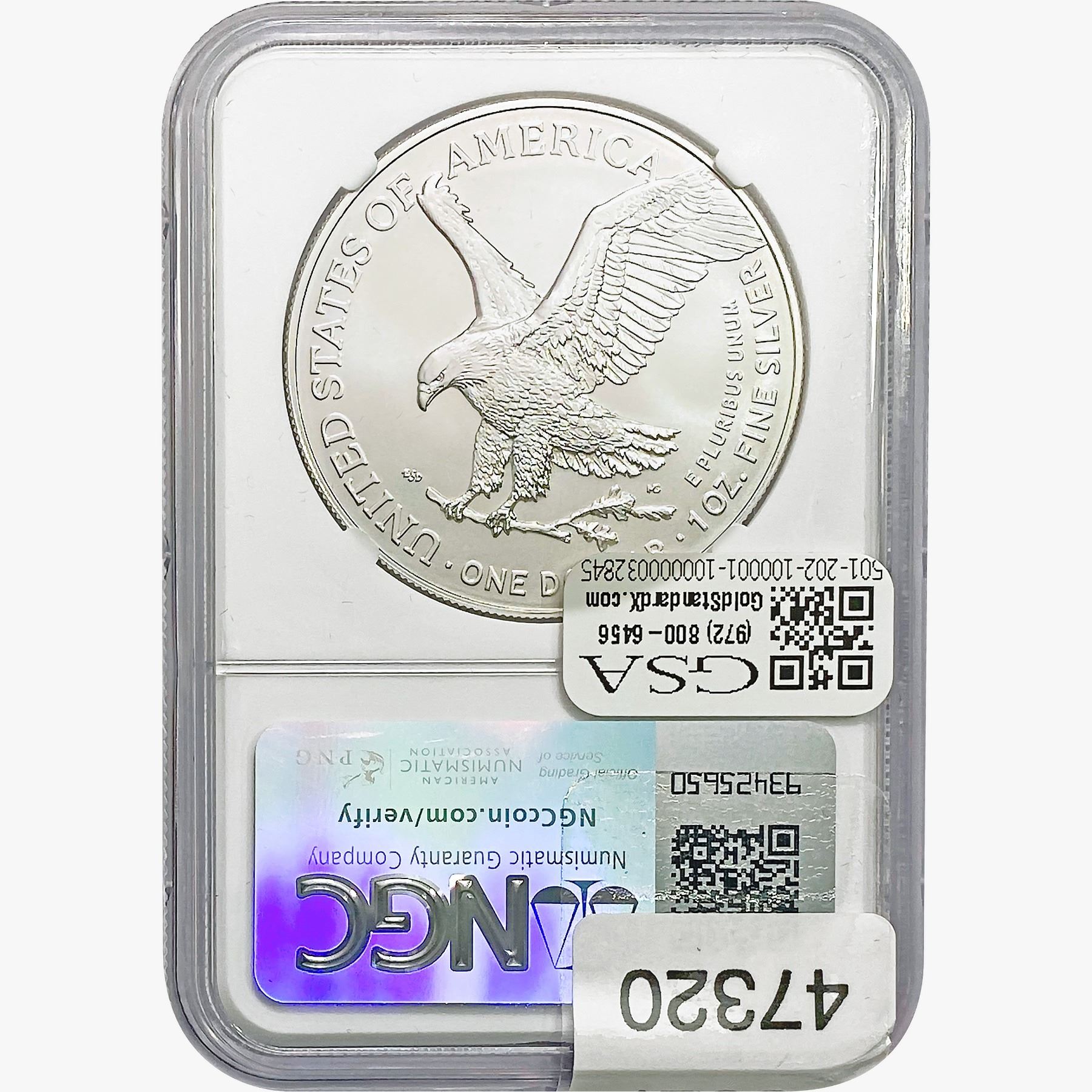 e. Coins sold referencing a third-party grading service are sold “AS IS” without any express or implied warranty, except for a guarantee by GSA that they are genuine. Removal or alteration of the holder, voids all of Bidder’s claims concerning that Product. Certain warranties may be available from the grading services and Bidders are referred to them for further details: Numismatic Guaranty Corporation (NGC), PO Box 4776, Sarasota, FL 34230, www.ngccoin.com/services/writtenguarantee.asp; Professional Coin Grading Services (PCGS), PO Box 9458, Newport Beach, CA 92658, www.pcgs.com/guarantee.html; ANACS, 6555 S. Kenton St., Ste. 303, Englewood, CO 80111; and Independent Coin Grading Co. (ICG), 7901 East Bellview, Ave., Suite 50, Englewood, CO 80111.