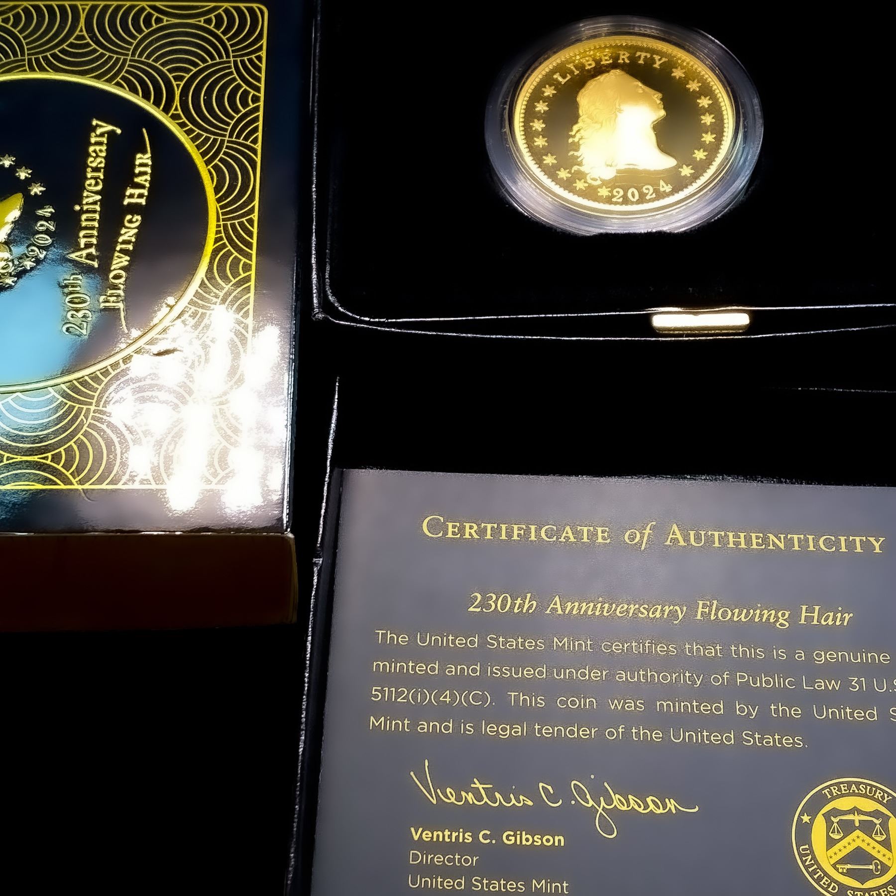 2024 1oz Gold Flowing Hair Medal SUPERB GEM PROOF DCAM
