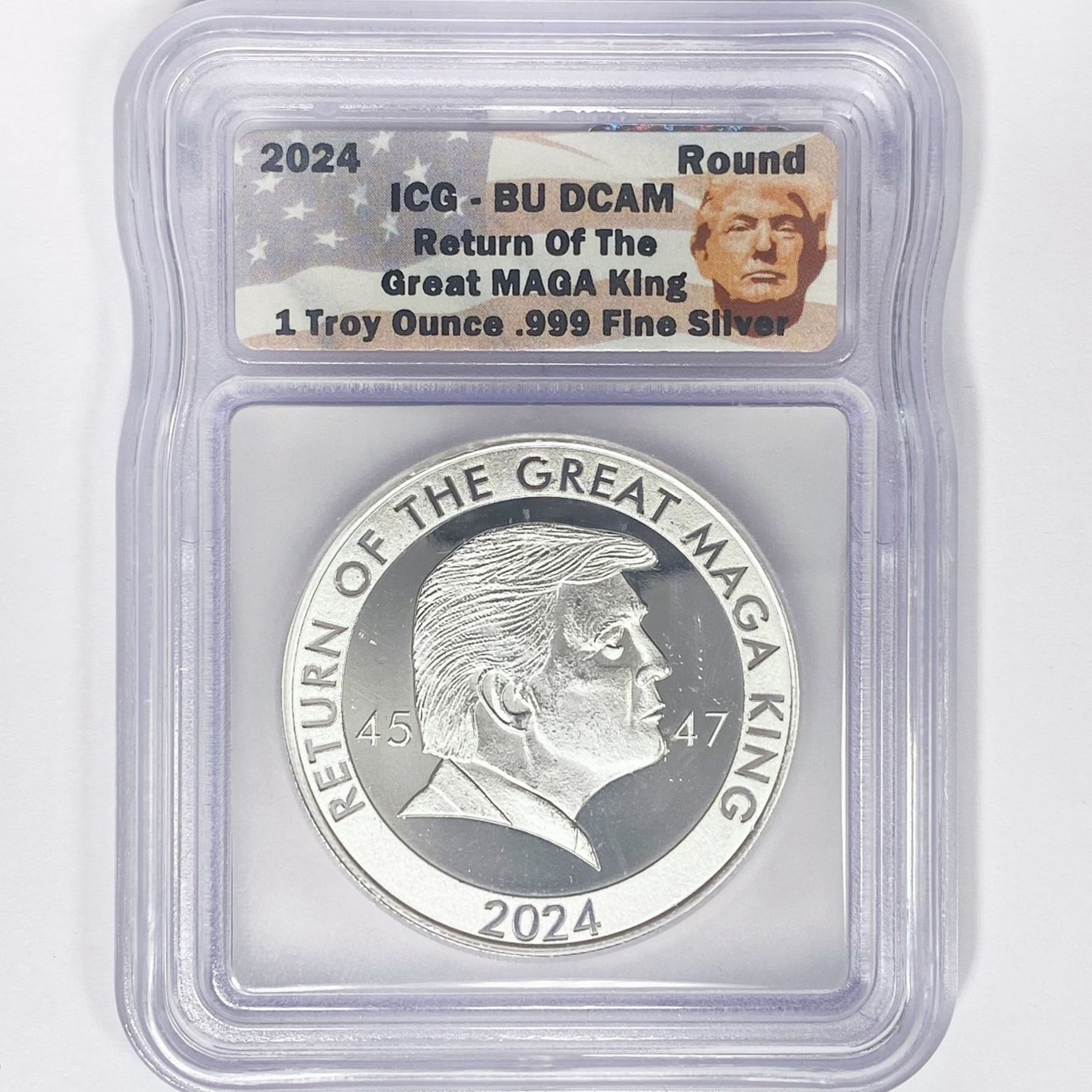 2024 1oz Silver MAGA King Trump ICG BU DCAM