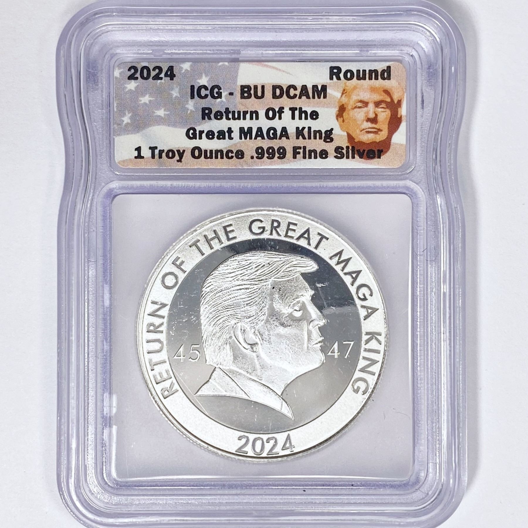 2024 1oz Silver MAGA King Trump ICG BU DCAM